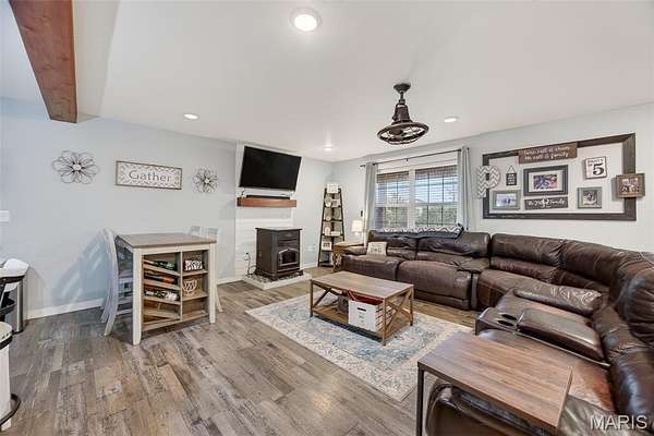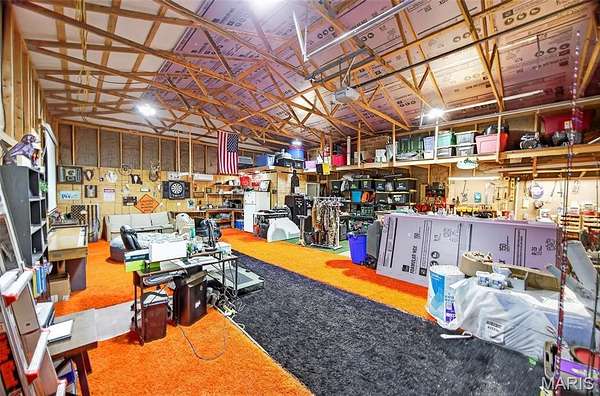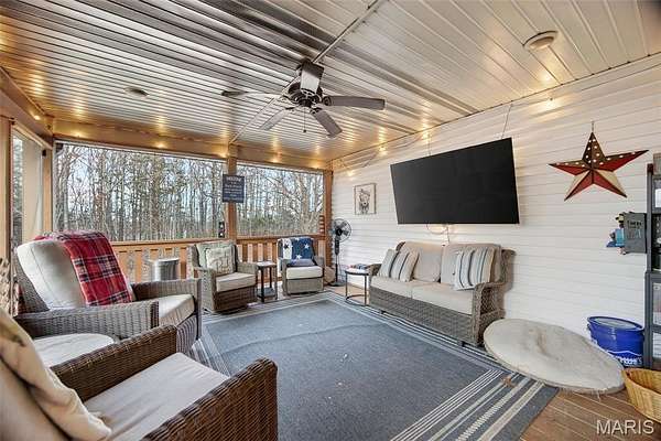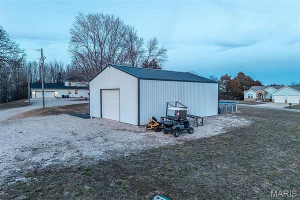 Outdoor living is equally impressive with a large rear deck, a screened-in porch for year-round enjoyment, and a 30ft pool surrounded by an expansive deck designed for summer gatherings. A tree fort for the kids, doubling as a tree stand. The attached two-car garage is complemented by a fully insulated second garage/shop with its own bathroom, providing exceptional flexibility for hobbies, storage, business use, or future guest accommodations. Additional features include an 80-gallon Energy Star water heater, whole-home water softener, and a pellet stove in the living area. This property delivers the rare combination of acreage, privacy, functional upgrades, and proximity to schools while remaining just minutes from Waynesville and Fort Leonard Wood. Measurements are approximate.