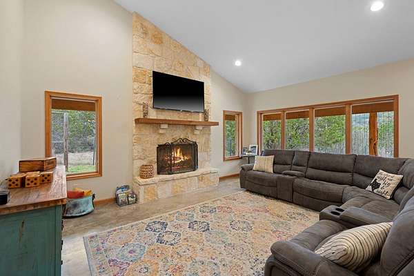 Experience the beauty of the Texas Hill Country - 600+ feet of Frio River frontage on this secluded 10.8 acre ranchette. Custom built w/accessibility in mind, the home offers handicap-accessible features, oversized showers, an open floor plan, high ceilings, & abundant natural light throughout. The kitchen is designed for both function & style w/an induction cooktop & easy flow into the living & dining areas-ideal for gathering & entertaining. The converted garage provides flexible living space as a bedroom w/bunks & playroom complete w/a loft for kids to unwind. Outside, the property invites you to relax & explore w/a screened gazebo in the garden, a 16x16 cedar deck, & concrete steps w/handrail leading to the river's edge. A seasonal waterfall adds to the natural charm as the land gently slopes down to the Frio where a circle drive provides convenient access to a screened waterfront porch. Addl features incl high-speed internet, RV septic hookup, 30-amp RV electrical service, & conduit w/an electric panel ready for a future hot tub. W/scenic views, privacy, & unrestricted use, this unique waterfront property offers endless opportunities for recreation, relaxation, or investment.