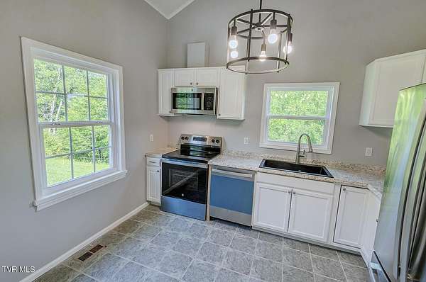 Nestled on over 5 acres of farmland, this property features a serene pond and offers majestic mountain views! Home has been remodeled consisting of fully renovated kitchen with new appliances, new Luxury Vinyl Flooring, freshly painted, new lighting and bathrooms have been updated. New windows, new exterior vinyl siding and newly constructed front porch and back deck. This home offers 3 bedrooms with primary on main level, 2 bedrooms and 1 bath upstairs. A separate laundry room. 1 Car attached garage, and basement has ample storage space unfinished. New Survey on File. This property is located within an easy drive to the Great Smoky Mountains National Park and Gatlinburg, Pigeon Forge, Douglas and Cherokee lakes. Buyer & Buyer's agent to verify exact information.