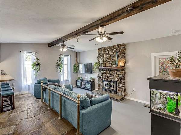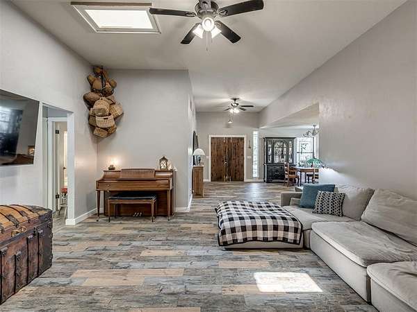 If you've been looking for a space to breathe, this is it. Nestled on 5.13 secluded acres in Piedmont, this cool home offers charm and endless possibilities. Go through the private gated entry and wind down the secluded drive to the main part of the property to find a big 2826' house, a 32x30' barn/shop and a fabulous chicken house. Whether you want to sip coffee on the huge front porch, gather your hen's fresh eggs, explore the creek or tend your raised garden beds, this place feels like a secret hidden retreat from the everyday hustle and bustle. Pet fencing off the house for your furbabies and additional fencing on property. Original home was built in 1971, with an addition done in 2020. House has four bedrooms, three full baths and two big living areas. There's a beautiful koi pond and waterfall just off the front porch that provides another level of serenity and peace. If you need to run to town for gas or groceries, get to Piedmont schools or have easy access to main highways for work, those are all just minutes away. The property also has a freestanding F-5 rated storm shelter a few step from the front door of the house. It's a little slice of "off-the-grid" that's just right down the road. Dont look at this one unless you want to buy it - you're going to want to live here the minute you drive through the gates. Buyer to verify all information!