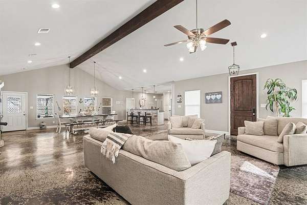 Experience peaceful living on nearly 3 acres of beautiful land! This stunning property offers an inviting home with modern amenities, stylish updates, and decorative lighting throughout. Enjoy your own backyard oasis featuring a heated sparkling pool and relaxing spa—perfect for entertaining or unwinding in privacy. The property also includes a spacious 200 amp electric shop with RV hook up, ideal for hobbies, storage, or projects. With room to roam, beautiful light throughout and thoughtful details inside and out, this home combines luxury, comfort, and serene living. It won't last long!