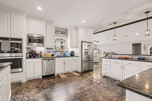 - Decorative Lighting, Double Vanity, Granite Counters, Kitchen Island, Open Floorplan, Pantry, Vaulted Ceiling(s), Walk-In Closet(s)