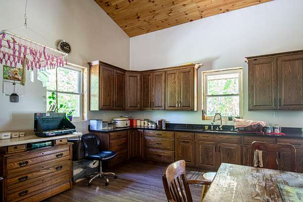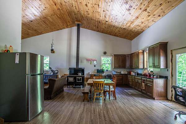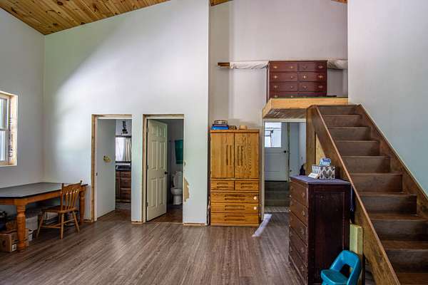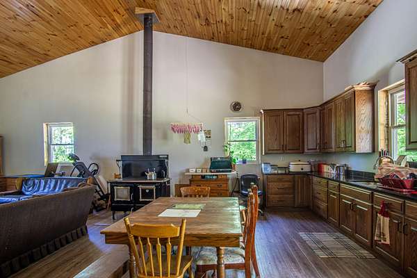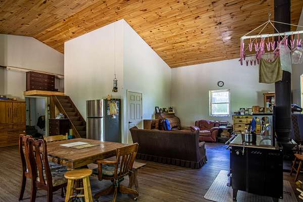 Unlock the potential of this unique and expansive property offering over 11,600 square feet of metal shop space paired with comfortable living quarters all set on 5.66 acres of mostly fenced land with a pond, dedicated deer pen and pasture for horses or cattle. Currently operating as a cabinet shop, this property is fully solar-powered (with traditional electric wiring in place) and multiple 14-foot bay doors, making it ideal for RV storage, semi-truck access, or a wide range of commercial and personal uses. Whether you're looking to continue a light industrial operation, create a storage facility, workshop, or something entirely new - the possibilities here are endless. The attached 1,280 sq ft residence features 2 bedrooms, 1.5 bathrooms, and a loft which could make extra bedroom space, making it perfect for live/work flexibility or onsite management. The property features a barn with several stalls. Whether you're an entrepreneur, hobbyist, or investor this is a rare opportunity to own a multi-functional property that blends work, home, and the great outdoors.