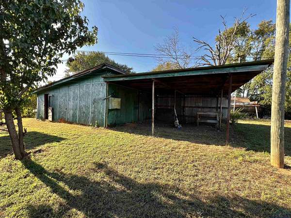 Experience the best of country living with this charming 3-bedroom, one-bath home, spanning just over 1150 sq ft. Nestled just outside the city limits, this property boasts an expansive 1.94 acres, complete with a variety of outdoor metal buildings. Enjoy the convenience of a covered carport suitable for an RV or mobile home, multiple workshops, storage units, a boat shed, and more. The land is adorned with majestic pecan and peach trees. While the home requires some tender loving care and completion of ongoing remodeling, it features a durable metal roof, a well, a recently installed water heater, fresh paint, and some partially updated flooring. With its vast potential and ample space, this property invites you to transform it into your dream home. Call today for your showing of this peaceful place!!!