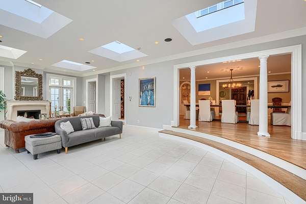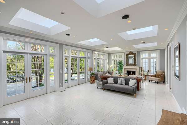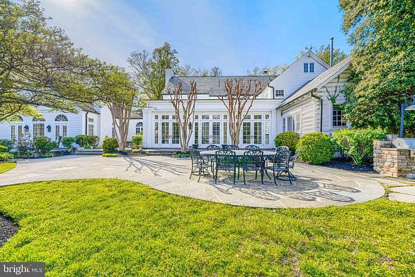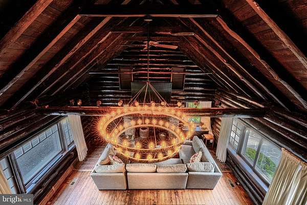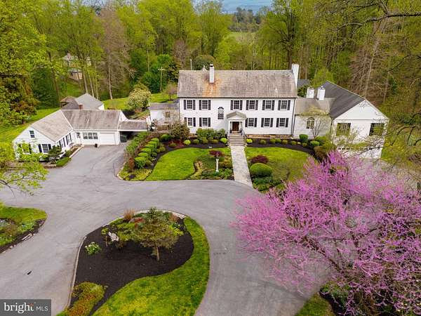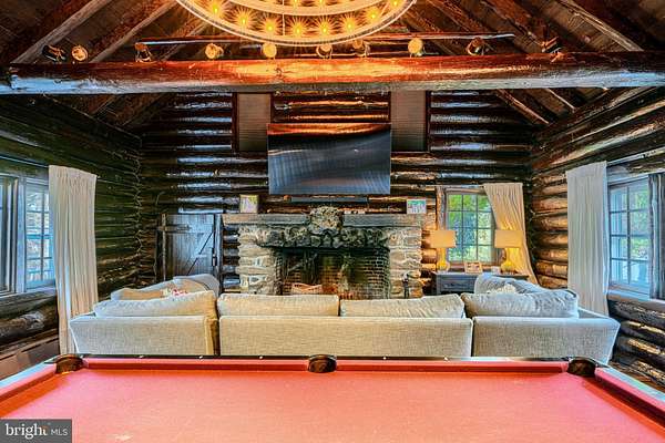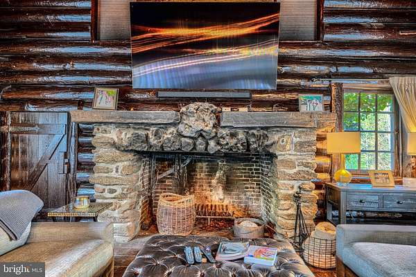Set on nearly five acres of exquisitely landscaped grounds, this extraordinary estate seamlessly blends historic character with sophisticated modern luxury. Anchored by an original log structure and thoughtfully expanded over time, the residence offers a rare combination of architectural significance, grand scale, and refined comfort. A gracious foyer introduces elegant formal spaces, including a beautifully proportioned living room, an inviting library/den with custom built-ins, and a distinguished dining room adorned with classic millwork. Designed for both intimate living and large-scale entertaining, the home unfolds into a stunning sunroom with limestone flooring, skylights, and multiple French doors opening to expansive bluestone terraces. At the heart of the home, the gourmet kitchen features marble surfaces, premium appliances, and custom cabinetry, flowing effortlessly into a warm and inviting breakfast room with fireplace. The dramatic family room-housed within the original historic log cabin-showcases vaulted beamed ceilings, wide-plank floors, and an impressive stone fireplace, creating a truly one-of-a-kind gathering space. The main-level primary suite offers a private retreat of exceptional scale, complete with its own fireplace, spa-inspired marble bath, dressing room, and direct access to outdoor terraces and a private shower balcony. Multiple additional en-suite bedrooms, including a secondary suite with sitting room, provide comfort and flexibility for family and guests. Additional amenities include a third-level recreation space, custom wine room, fitness studio, and a separate guest house with full living accommodations. Outdoors, the estate transforms into a resort-caliber setting with a heated pool, beautifully rebuilt pool house, outdoor kitchen, and extensive stone terraces surrounded by mature trees and curated landscaping. A rare offering that combines timeless elegance, rich history, and modern livability in a truly exceptional setting.