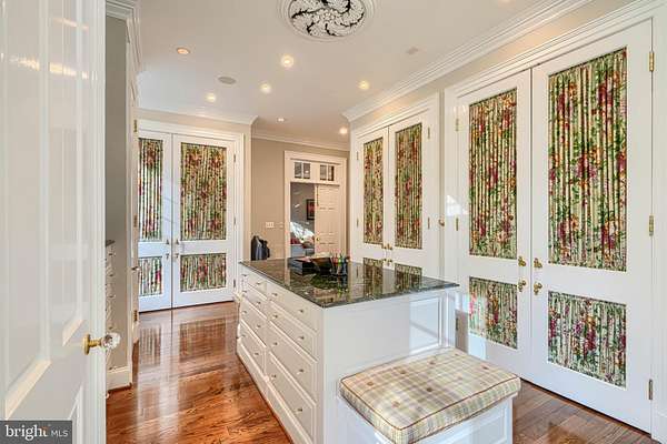 - Additional Stairway, Attic, Breakfast Area, Built-Ins, Carpet, Ceiling Fan(s), Chair Railings, Crown Moldings, Dining Area, Eat-In Kitchen, Entry Level Bedroom, Exposed Beams, Family Room Off Kitchen, Formal/Separate Dining Room, Gourmet Kitchen, Jetted Tub Bathroom, Pantry, Primary Bath(s), Recessed Lighting, Skylight(s), Soaking Tub Bathroom, Stall Shower Bathroom, Table Space Kitchen, Traditional Floor Plan, Tub Shower Bathroom, Upgraded Countertops, Walk-In Closet(s), Walk-In Shower Bathroom, Water Treat System, Wet/Dry Bar, Whirl Pool/Hot Tub, Window Treatments, Wine Storage, Wood Floors