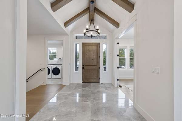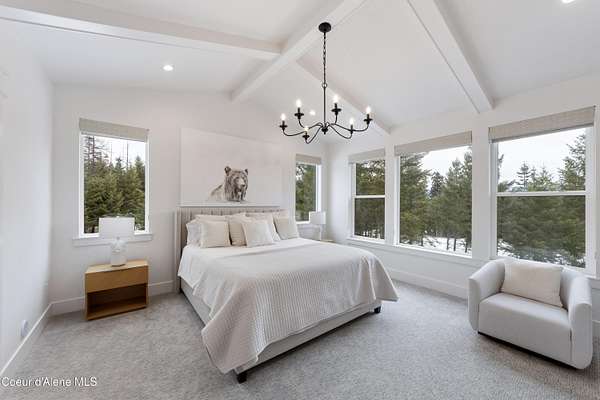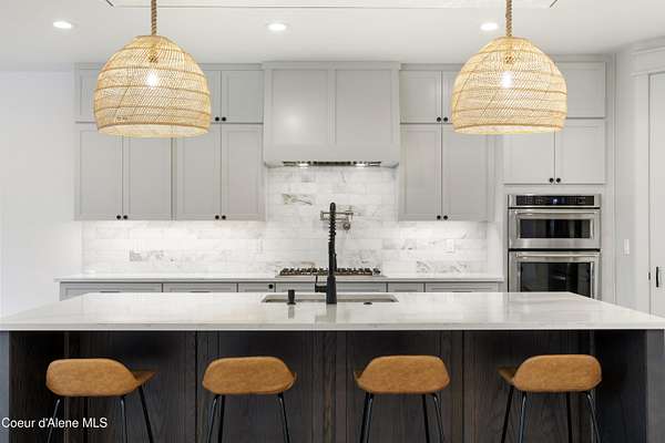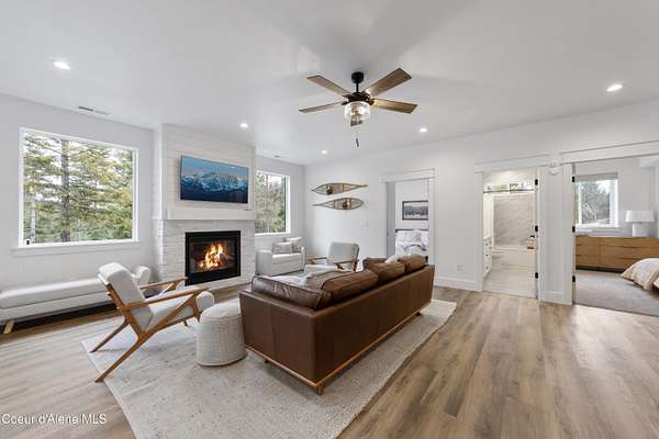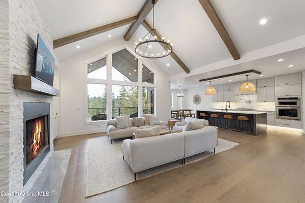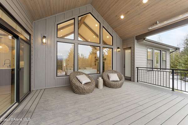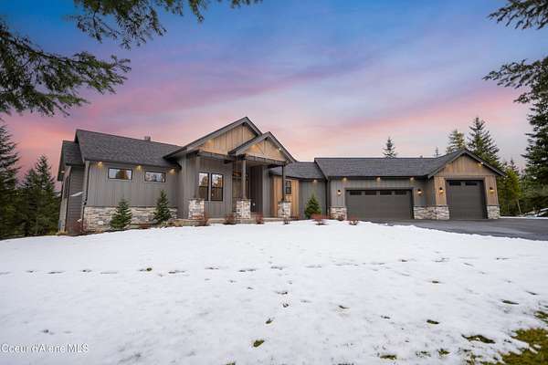 Set on 3.1 beautifully forested acres within a quiet gated community, this impressive 2022-built, 5,400+ sq ft 6BR/5BA home offers a perfect balance of luxury and privacy. The open floor plan features vaulted ceilings, a chef's kitchen with quartz and marble, and a dedicated main-floor office. Designed for flexibility, the residence includes a full daylight basement with two full kitchens and two laundry rooms-ideal for multigenerational living. The main-level primary suite is a true retreat, while the lower-level wellness wing boasts a built-in dry sauna and home gym. The property uniquely borders a 19.5-acre common area featuring green space and two ponds, acting as a massive private buffer. A spacious deck overlooks mountain scenery, complemented by a heated 3-car garage and RV parking with room for a shop/ADU. Ideally situated between Sandpoint & CDA, just 10 mins to groceries, 7 miles to Lake Pend Oreille boat launch, and 45 mins to Schweitzer Mountain. Experience the best of North Idaho livingprivacy, space, and modern comfort.