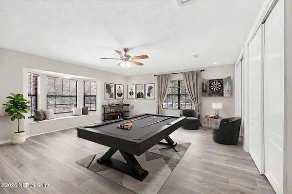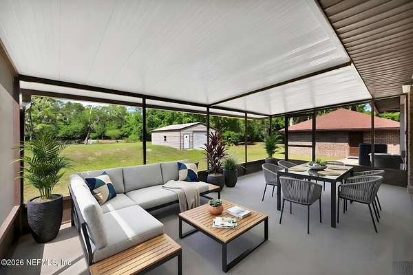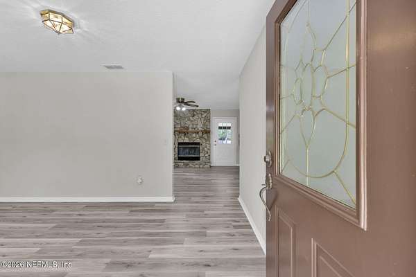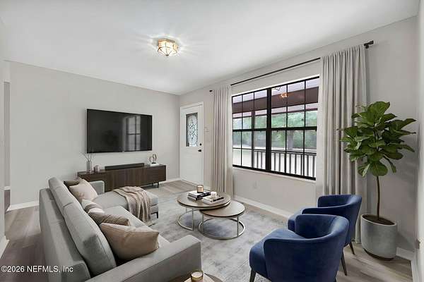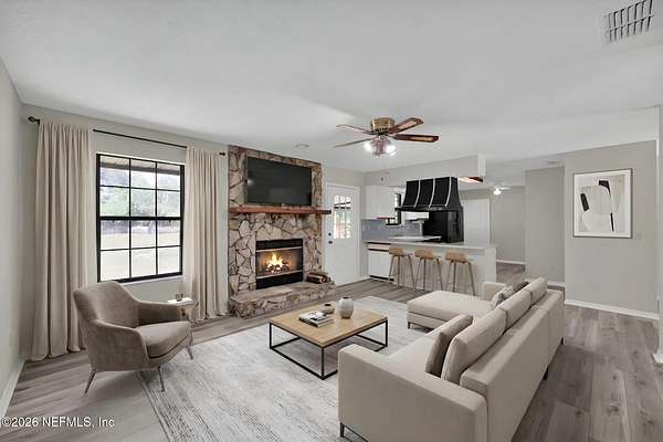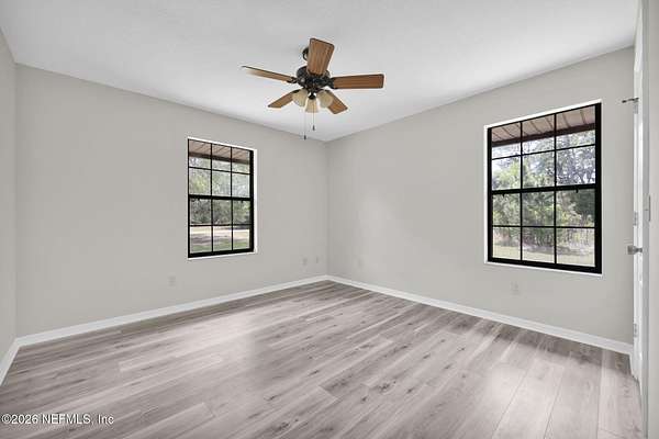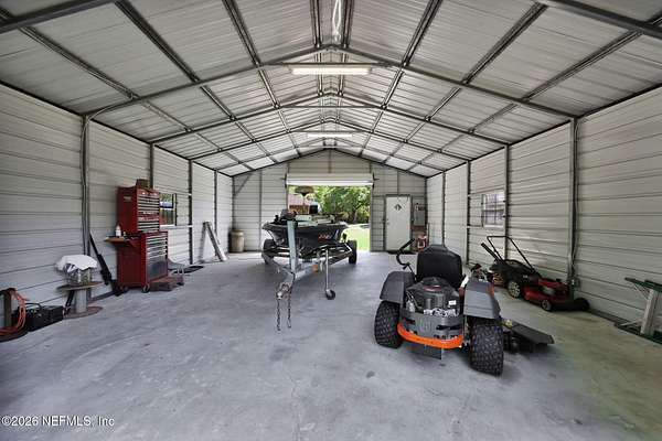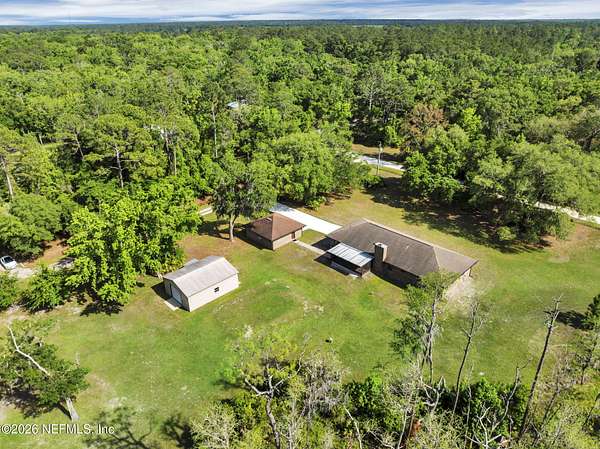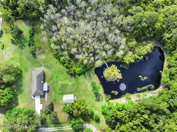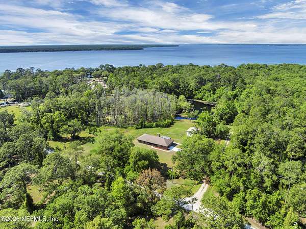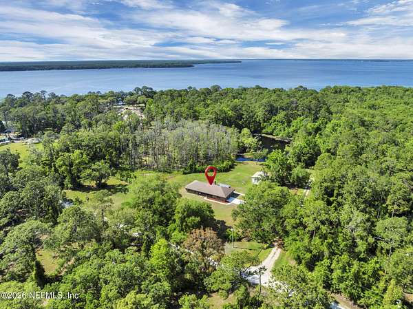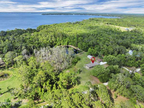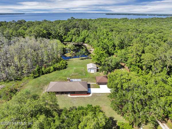 Experience an arrival unlike any other in Northeast Florida. Drive into 227 River Forest through a sensory masterpiece. It'll begin with a scenic drive along State Road 13. To your west, mature, moss-draped oaks frame the shimmering St. Johns River; to your east, some of the region's most prestigious custom homes line the horizon. As you turn toward your estate, the world slows down. A perfectly maintained dirt road flanked by vibrant, sculptural Bottlebrush hedges create a private, emerald corridor leading you to your sanctuary. Nestled on over five acres of pristine land, this meticulously maintained brick residence offers the rare luxury of space without sacrifice. Held by a single owner and cared for with exacting standards, the property balances high-end rural living with modern sophistication. This 2,189 sq. ft. home features a maintenance-free brick exterior. Inside the home, find a fresh, contemporary aesthetic with brand-new LVP flooring and a chef-inspired kitchen boasting new stainless steel appliances. Beyond the three spacious bedrooms, enjoy a large bonus room, a dedicated office, formal dining room and two separate living rooms. Step outside and enjoy the breeze from your covered front porch or the expansive screen-enclosed lanai. The opportunities on this land are endless. No HOA/CDD fees, Equestrian approved, room for toys, there's even room for an additional custom home to be built, with the current home converting into an on site in-laws home. If you can dream it, this property can make it come to life. The backyard isn't just a yard; it's a destination. The centerpiece is a 1.23-acre fully stocked lake, complete with a charming bridge leading to your own private island. Whether you are an avid angler or looking for a meditative retreat, this water feature is the heart of the estate. Total peace of mind comes standard with a new AC system, a new hot water heater (2021), a newly installed septic tank, new rain gutters, new concrete driveway and a newer septic tank. A two-car detached garage has been transformed into a fully conditioned space with AC, drywall, and carpet--currently serving as a premier home gym and game room. A massive 24x30x12 ft metal garage provides ultimate utility. Featuring drive-through capability with single garage doors on each end, it is the perfect housing for a boat, car collection, or heavy equipment. This is really a must see!