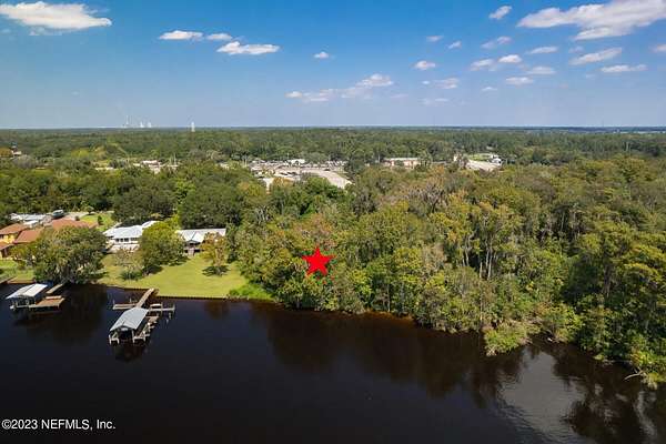 Est $4,873/moRiverfront! Over an acre of wooded property with 100 +/- ft of frontage on the beautiful St. Johns River. Zoned C-2 and AG. Located near the intersection of heavily traveled Highway 17 and State Rd 207, for an easy commute to St. Augustine. Public utilities are availalbe, but are not connected. There is deeded access and parking agreement on state property.