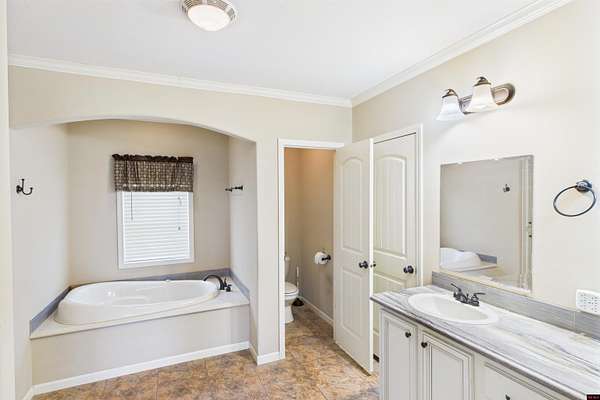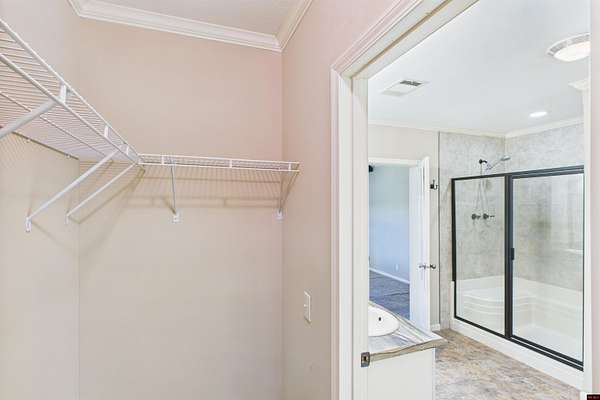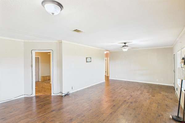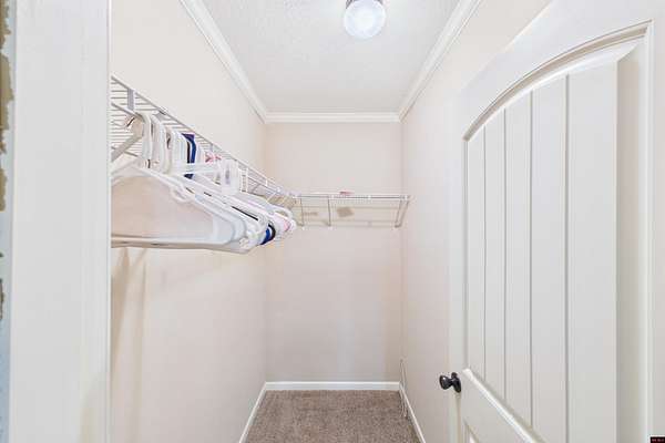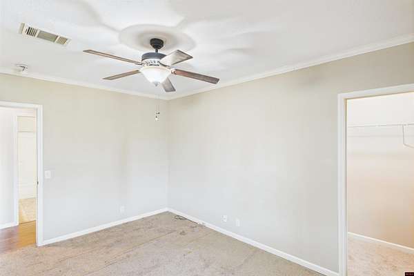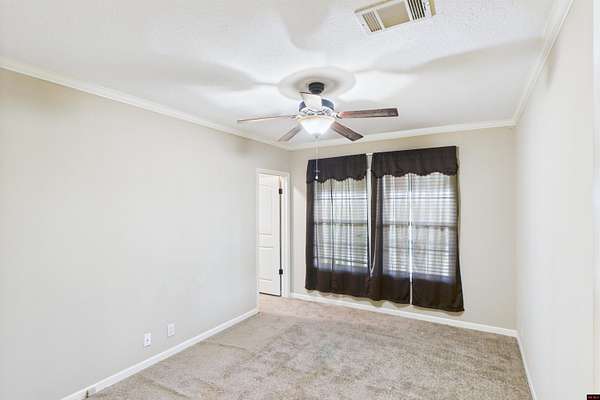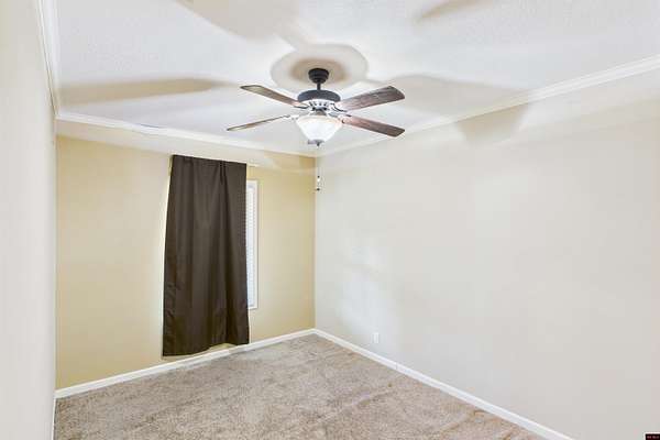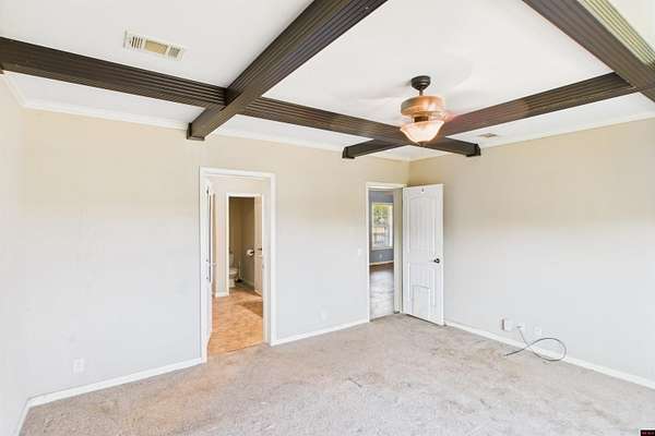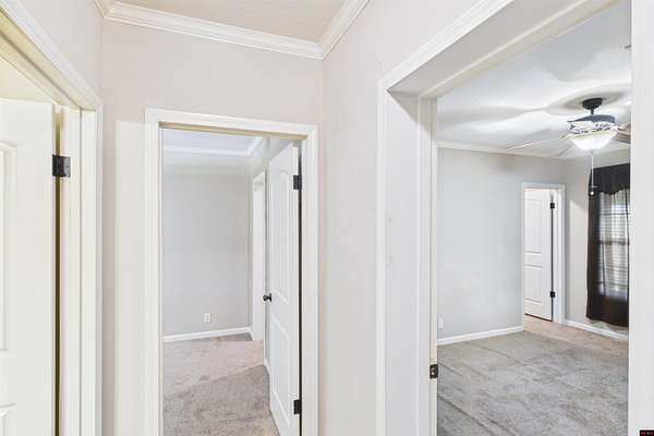 - Carpet, Ceiling Fan(s), Open Floor Plan, Split Bedroom Plan, Tile Floors, Walk in Closet
