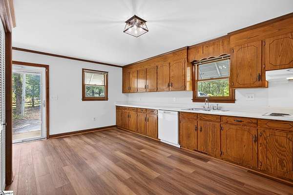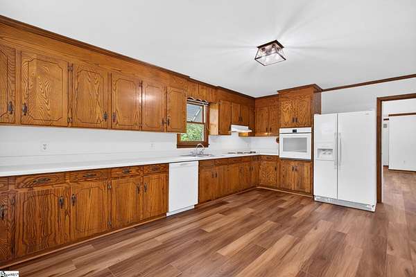 If land, privacy, and value are at the top of your checklist, your search ends here. Welcome to White Dr! Nestled on nearly 4 beautifully wooded acres with NO HOA, this is the kind of property that rarely comes to market at this price point. This spacious 5-bedroom, 2.5-bath ranch has been thoughtfully refreshed and is truly move-in ready. Fresh paint throughout and brand new luxury vinyl plank flooring give the home a clean, modern feel while preserving its warm, welcoming character. The open floor plan creates an easy, comfortable flow perfect for everyday living and entertaining alike. Outside, the detached 2-car garage is a standout feature — complete with a finished upper-level bonus room that offers endless possibilities. Whether you envision a private workshop, creative studio, home gym, or the ultimate man cave, this space delivers the flexibility today's buyers are looking for. Currently on well and septic, the property also offers the option to connect to city water, sewer, and gas — giving you the best of both worlds. Enjoy the peace and freedom of acreage living while keeping future utility options open. With nearly 4 private acres, no HOA restrictions, and a home that's ready to go, opportunities like this don't stay on the market long. Schedule your showing today!