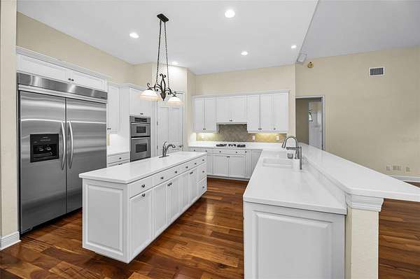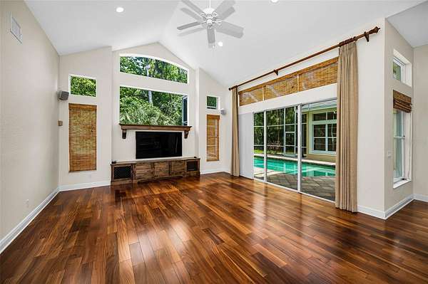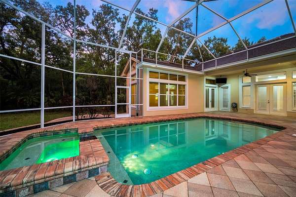 Welcome to luxury living in the desirable Gated, Golf Community of East Lake Woodlands! This stunning home in Turtle Creek has a Premium Conservation Setting and features 4 Bedrooms plus Office/Den and Bonus Room, 4.5 Baths all on One-Story with the exception of the bonus room. Perfectly nestled on a picturesque Cul-de-Sac, tranquility and privacy are yours. Enjoy the best of both worlds with a serene, fenced back yard that’s easy to maintain while having the privacy of Deep Conservation beyond on this Expansive 1.95-acre lot. Plus this home is located in the preferred Zone X so No flood insurance is required! The wide Side Load Garage measuring 28’ x 22’ and large Pavered Driveway provide generous parking and set the tone for a stately entrance accented with Travertine along front and side. Step inside to Open Living Room and Dining Room elegance with Soaring Volume Ceilings, Stunning Crown Molding and Dramatic Windows that create an inviting ambiance. Flexibility abounds with this Floor Plan with the Office/Den and Bonus Room providing plenty of options to best fit your family’s needs now and in the future. And the Three-way Split bedroom layout gives everyone their own space. Need a 5th Bedroom? No problem, the front Office/Den is generously sized and features a closet plus gorgeous windows. The Open Concept continues to the Kitchen and Family Room ideal for entertaining small or large gatherings of family and friends. Stainless Steel Appliances including Oversized Fridge, Gas Range and loads of Storage highlight this kitchen in addition to its large Center Island with Prep Sink, Walk-In Pantry and Breakfast Bar for lots of seating. Retreat to the luxurious Primary Suite which occupies the entire right wing of the home and includes an Additional Sitting Area complete with Cozy Gas Fireplace and a Spa-like Primary Bathroom with long Dual Vanity, Deep Soaking Tub and all Neutral Creamy Tones - your personal oasis. This home also boasts a convenient shared bathroom for bedrooms 2 and 3 plus another separate 4th bedroom and bath. Outdoor Living and all that privacy is accentuated with the Gorgeous Pool and Spa with Electric and Gas Heaters respectively, impressive Covered and Screened Lanai and Extensive Pavers which carry through to the side walkway spanning the length of the home. Upgrades include Tankless Water heater installed in 2026, New Trane A/C for main portion of the house in 2021, Bosch Dishwasher in 2025, Electric Pool Heater in 2021, Reverse Osmosis System, Tile Roof in 2013, Aluminum Fencing and Mini-Split A/C in Garage. Plus 2023 Samsung Washer and Dryer are included in the sale. Relax and take advantage of Optional Memberships to Ardea Country Club including Resort-Style Amenities such as 2 Golf Courses, Fitness Center, Heated Lap Pool and Freeform Pool, Poolside Café, Pickleball and Tennis, Dining and a host of Events. Located conveniently to Tampa International Airport, Top-rated schools, Beautiful Beaches, Medical Facilities, Parks and Outstanding Dining, this exceptional home offers the perfect blend of Luxury, Convenience and Lifestyle. Don’t miss your opportunity to own this East Lake Woodlands gem!