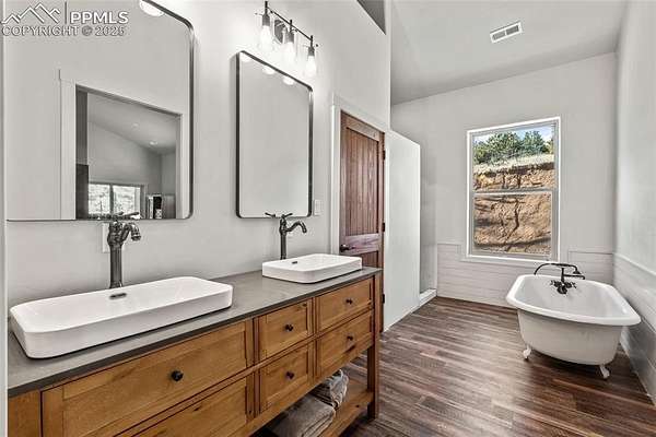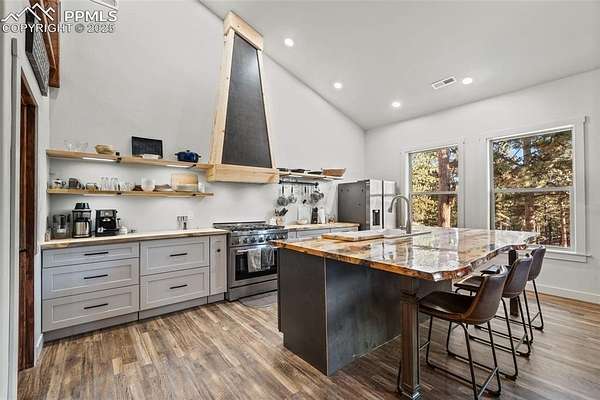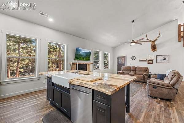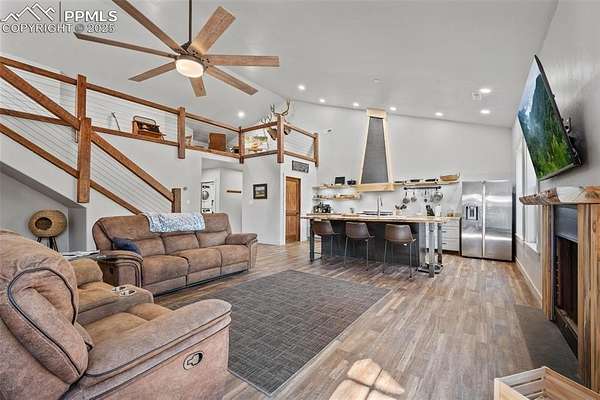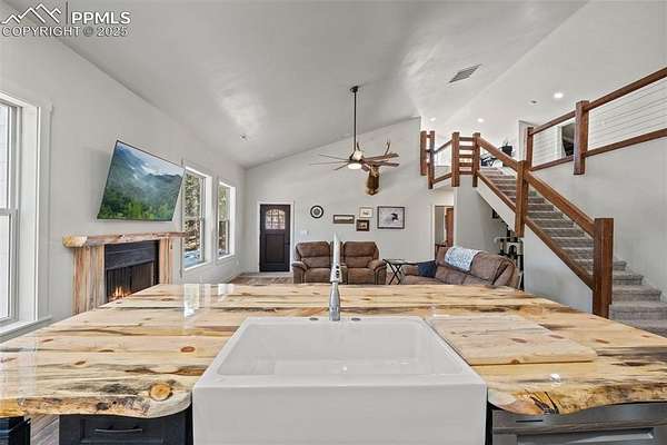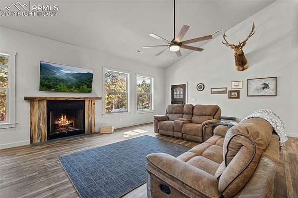 Discover this stunning modern mountain home set on 4 fully usable acres, offering privacy, functionality, and endless possibilities. The home features a large open-concept layout with a cozy wood-burning fireplace-perfect for keeping warm on cool mountain nights. The spacious primary suite includes a double vanity, walk-in closet, and a private sitting area with direct access to the beautiful forested surroundings. In addition to the main home, the property includes an approximately 480 sq ft potential ADU, ideal for guest quarters, rental income, multigenerational living, or workshop/art studio . Utilities are already in place, including a septic system. There is an additional storage unit for storage and other possibilities Enjoy easy access with a circular driveway and ample parking, all surrounded by peaceful, private scenery. This unique property offers limitless potential-mountain living at its best.