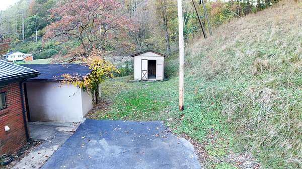 Welcome to this charming brick ranch nestled along scenic Turkey Creek in Pike County, Kentucky. Set against a wooded Appalachian hillside, this home offers the perfect mix of privacy and convenience-just minutes from U.S. 119 and the amenities of Belfry, Pikeville, and the Tug Valley area. The home features low-maintenance red-brick exterior construction, additional room that could be used as a 3rd bedroom, paved parking with a metal carport, and a covered side entry leading into a cozy interior ready for personalization. Inside, you'll find original mid-century details, paneled walls, vintage wallpaper, and ample natural light through front-facing windows. With a traditional single-level layout, this property can easily be updated to fit modern living while maintaining its Appalachian character. Out back, a detached workshop and storage building with electrical service provides excellent space for tools, hobbies, or small-business use. The property also includes a French drainage system for improved water management and a modern security system for peace of mind. The surrounding mature trees, level lawn, and nearby hillside create a peaceful mountain setting ideal for year-round living or a vacation getaway. Public water, electric service, and paved road frontage add to the property's practicality. Whether you're seeking an affordable full-time residence, a short-term rental opportunity, or a fixer-upper investment in Eastern Kentucky, this property offers exceptional potential at a great value. Enjoy the natural beauty and friendly small-town atmosphere of the Belfry community-located near the Tug Fork River, hiking and ATV trails, and within driving distance of the Hatfield-McCoy Recreation Area and Breaks Interstate Park.