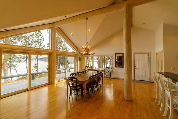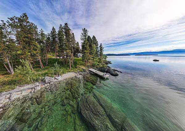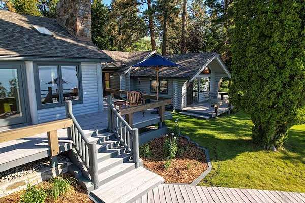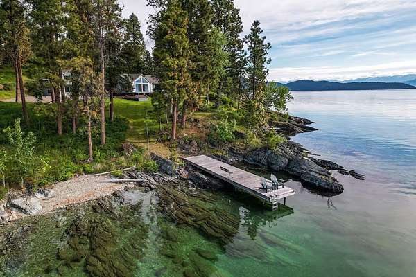 This rare Flathead Lake property in Northwest Montana, offers secluded privacy on an expansive 5.4 acres, with 700 feet of accessible lakefront with breathtaking views of Wild Horse Island and the Mission and Swan Mountains. The historic, original main cabin has been updated and expanded while maintaining the lake cabin charm. It is complemented by a detached, private guest cottage and a 2 level guest house, nestled in a natural pine forest, all just steps from the home. The large lot provides plenty of space to create a secluded retreat or develop a premier waterfront estate. Whether you choose to enjoy the existing setup or build your dream home, this unique property offers endless possibilities in a stunning lakeside setting. Don't miss the opportunity to own a slice of Montana paradise!