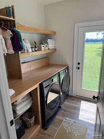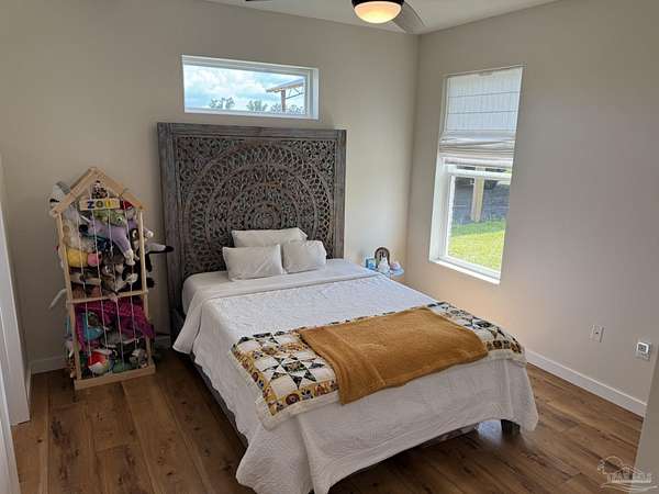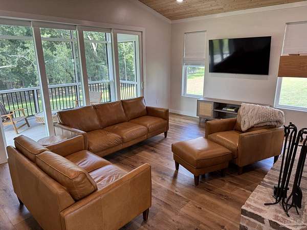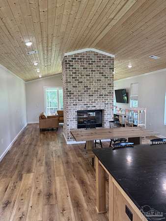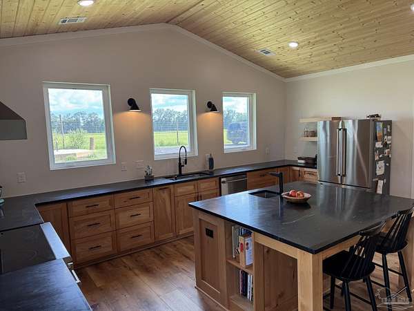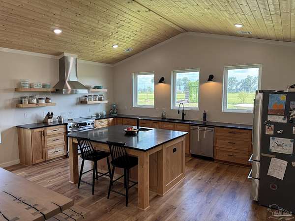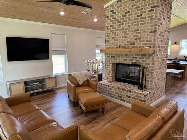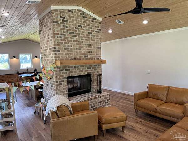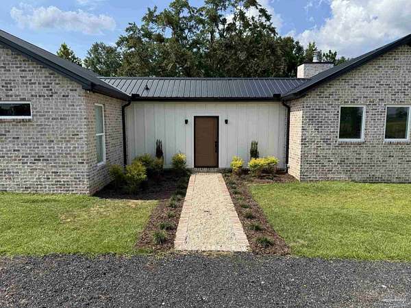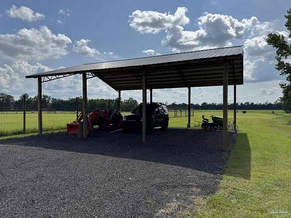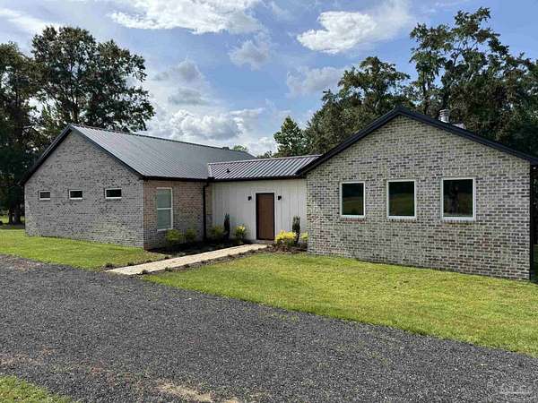 Modern cottage, built the end of 2024, on a rolling 20 acre meadow and nestled at the top of a watershed. Infrastructure for permaculture homestead improvements made, including deer fencing around 1.3 acres intended for orchard and kitchen garden, a 5hp well for irrigation, a 1.5hp well used for the house and a garden hand pump. Two separate power drops can be used for storm season generator or RV hookup. The back ten acre meadow is ideal for livestock grazing or apiary and wildflowers. Seasonal stream flows the length of the wooded north side of the property and is home to Old Florida wildlife like fireflies, gopher tortoises, whippoorwills & whitetail deer. Property is surrounded by cattle ranches, homesteads and seasonal agro-tourism. Imagine sourcing your meat, dairy and produce within five miles of your home. See the stars at night again and feel the refreshing breezes on this ridge above the area's developed river basins. House is equipped with Thor appliance package, LG front load washer/dryer, reverse osmosis filtration system and spray foam insulation throughout. Between the three bedrooms is a storm room built with foundation anchors for peace of mind. All custom shelving, cabinetry and mantle were hand crafted by local Allentown carpenter and the cattle & deer fencing were built by Schneider's. North facing courtyard is designed for privacy and passive cooling. The common living on east side of home is an open layout with double sided fireplace between living and dining spaces. Oversized stacker sliding glass doors open to a screened in porch overlooking your stream. Large working kitchen and walk-in pantry for the chef in your family is ideal for your farm to table lifestyle. The bedrooms reside on west side of home, over looking wildlife and maximizing natural light throughout your day. Come see this home before it's gone!