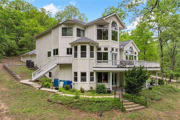 A very rare find in the Ozark Mountains is this classy 3 story Victorian home, beautiful and move in ready, having over 3000 SQFT, 3 bedrooms 2.5 baths but ALSO a 2 story 30'x40' Barndominium with 2 bedrooms and 2 bath. The bardo has approx. 1400 SQFT of living space plus a 22'x30' workshop. This property includes over 54 acres of beautiful land. Home has 3 fireplaces, 2 gas logs and 1 wood burning, with newer windows and fixtures, lots of glass, hardwood floors, a pantry, walk-in closets, tiled walk-in shower, jetted tub, office, large concrete with steel decks and a patio, plus a 3 car garage surrounded by gorgeous iron work, Lots of shade trees with useable land, in a private setting. Plus so much more, don't miss seeing this one!