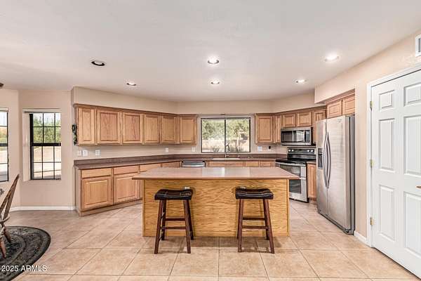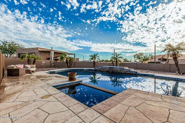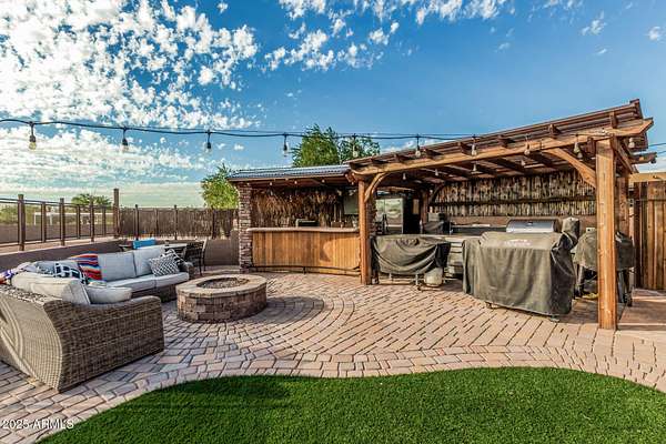 Bring all your toys! This beautifully appointed 3-bedroom, 2.5-bath home sits on 2 acres with breathtaking mountain views and no HOA. The thoughtfully designed split floor plan offers open living spaces and a seamless connection to the outdoors. Step outside to your backyard oasis, complete with a poolside built-in kitchen area-perfect for entertaining or simply enjoying the Arizona sunshine. Enjoy the best of both function and flexibility with an attached 2-car garage plus a detached shop featuring additional garage bays (with AC & additional bathroom!!) -ideal for car enthusiasts, hobbyists, or extra storage. There's ample parking for RVs, trailers, and guests, giving you all the space you need for toys and tools alike.