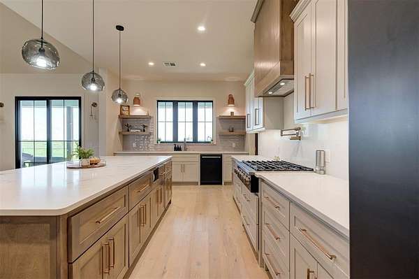 Modern ranch on 2.14 acres in Tuscan Estates, Deer Creek Schools! Built in 2023 by Highland Building Co., this 3,244 sq ft home features 3 beds, 3.5 baths, a 4-car garage, and a loft over the garage. Enjoy an oversized living room, large bedrooms with walk-in closets, and a stunning kitchen with a 10-ft island, gas range, double ovens & beverage fridge. Dedicated home office with built-ins. Wood floors throughout, tile in wet areas, and carpet only in loft. Two propane fireplaces (indoor & outdoor), covered porches front & back, and a generous portion of the backyard enclosed with black chain-link fence. Zoned gas/electric, spray foam insulation, security system, tankless water heater, sprinkler system, well, septic & buried propane. Oversized concrete driveway. HOA not yet turned over; est. $350/year. Move-in ready with space, privacy & high-end finishes throughout!