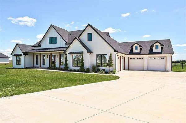 Modern ranch on 2.14 acres in Tuscan Estates, Deer Creek Schools! Built in 2023 by Highland Building Co., this 3,244 sq ft home features 3 beds, 3.5 baths, a 4-car garage, and a loft over the garage. Enjoy an oversized living room, large bedrooms with walk-in closets, and a stunning kitchen with a 10-ft island, gas range, double ovens & beverage fridge. Dedicated home office with built-ins. Wood floors throughout, tile in wet areas, and carpet only in loft. Two propane fireplaces (indoor & outdoor), covered porches front & back, and a generous portion of the backyard enclosed with black chain-link fence. Zoned gas/electric, spray foam insulation, security system, tankless water heater, sprinkler system, well, septic & buried propane. Oversized concrete driveway. HOA not yet turned over; est. $350/year. Move-in ready with space, privacy & high-end finishes throughout!