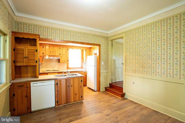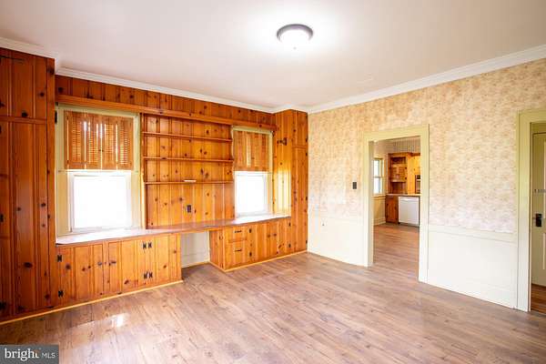 - Breakfast Area, Built-Ins, Combination Kitchen/Dining, Crown Moldings, Dining Area, Eat-In Kitchen, Family Room Off Kitchen, Galley Kitchen, Stall Shower Bathroom, Table Space Kitchen, Traditional Floor Plan, Tub Shower Bathroom, Window Treatments, Wood Floors