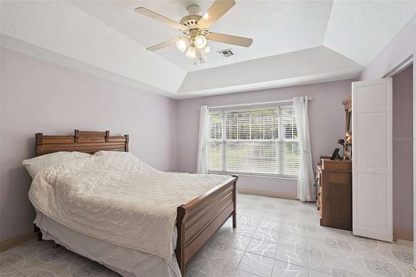 The private primary retreat offers elegant tray ceilings, a jetted soaking tub, walk-in shower, and generous walk-in closet. The oversized laundry room provides extensive storage, while the freshly updated garage includes repainted walls, refinished flooring, and additional attic storage space. Major updates include A/C replaced in 2025, Roof 2022, and a newer water heater for added peace of mind.