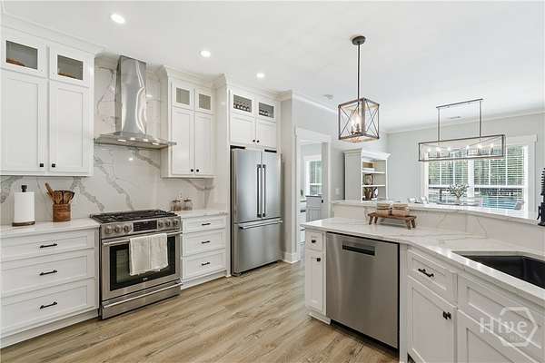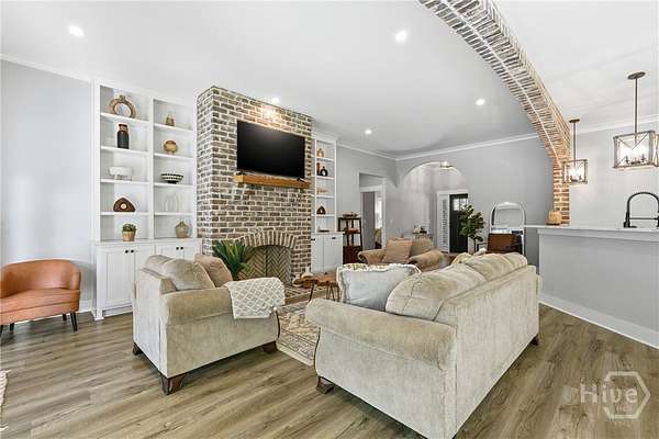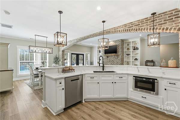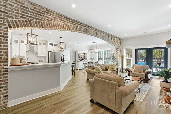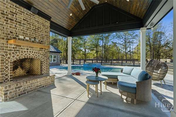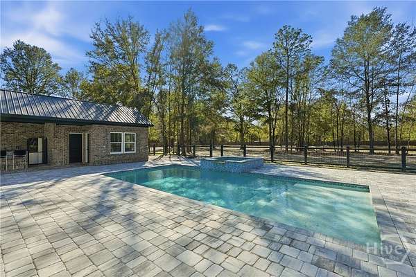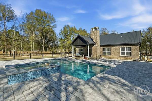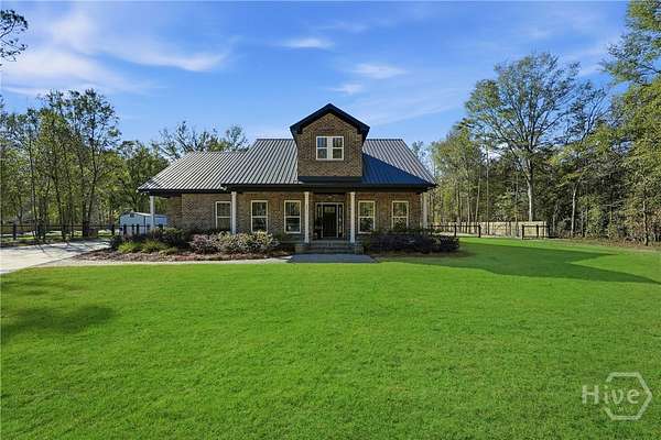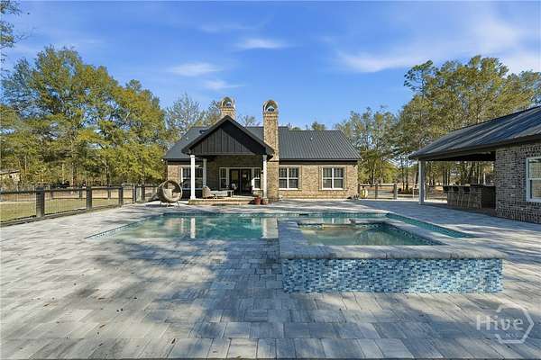 Private Luxury Estate with Heated Pool, Dual Fireplaces & Detached Guest Residence! Experience refined country living just minutes from I-16, Savannah, and the Hyundai Mega plant. This custom-built brick estate sits on 2.79 fully fenced acres and blends timeless craftsmanship with modern luxury. Inside, every detail reflects quality and intention, luxury vinyl flooring throughout, tile-appointed baths, spray foam insulation in walls and roof for superior efficiency, and a durable metal roof built to last. Custom wood closet systems enhance every bedroom, while the primary suite offers a spa-inspired retreat with a walk-in shower and elegant rainfall shower head. The chef's kitchen features gas cooking and premium finishes designed for both everyday comfort and upscale entertaining. The main living area is centered around a striking wood-burning fireplace, creating warmth and sophistication. Outdoors, a second wood-burning fireplace anchors the vaulted covered porch, overlooking the heated pool with waterfall and hot tub. Expansive paver patios wired outdoor speakers, and a fully equipped outdoor kitchen with gas cooking create a true resort-style atmosphere designed for gathering and relaxation. Adding exceptional value and versatility, the detached brick guest residence offers a private bedroom and full bath ideal for extended family, executive guests, a private office retreat, or potential income-producing use. With sprinkler system, public water plus private well and septic, brick-edged large driveway, extended front porch, and no HOA, this estate delivers privacy, flexibility, and elevated living without compromise. Luxury. Comfort. Lifestyle. This is more than a home - it's an experience.