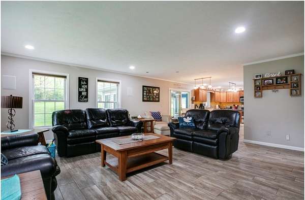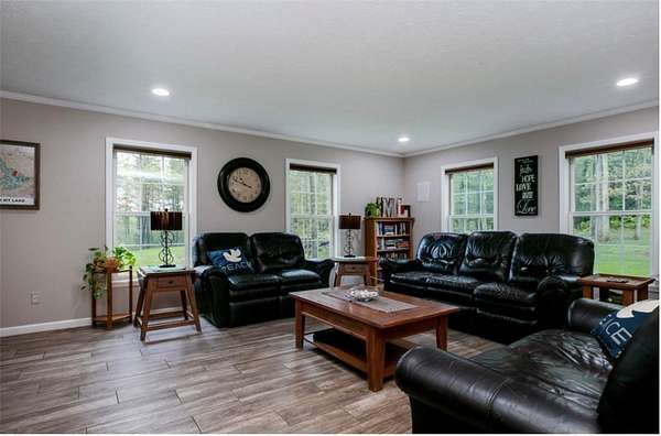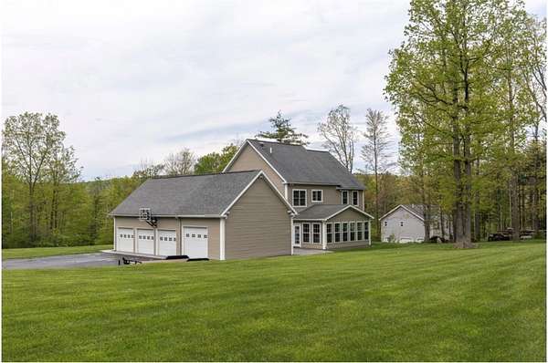 Welcome to this stunning and spacious home offering 4,387 sq ft of beautifully designed living space set on 5.43 picturesque acres. With 4 bedrooms and 2.5 baths this impressive property blends comfort, functionality and exceptional craftmanship throughout. Follow the stamped concrete sidewalk to an impressive covered porch then step inside to discover a large foyer open to the second level, expansive open living areas perfect for everyday living and entertaining. The home features in-floor radiant heat providing efficient warmth and comfort year-round. An oversized breezeway creates the perfect transition between spaces and provides an awesome mud room or pet area. Enjoy peaceful mornings and relaxing evenings in the impressive three-season room, where you can take in the surround natural beauty of your private acreage. Car enthusiasts hobbyist and or anyone needing extra space will appreciate the massive four car garage, offering ample room for vehicles, storage and projects, plus a second level for more room and excellent storage. With its generous sq ft, thoughtful layout, and beautiful setting, this exceptional property offers privacy, space, and comfort-all in one remarkable package.