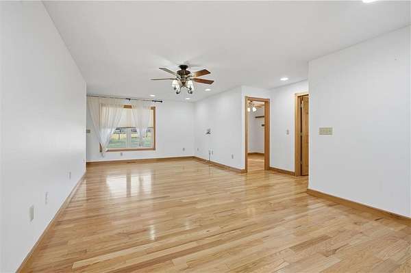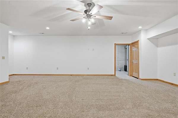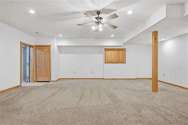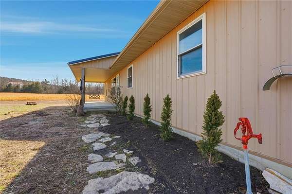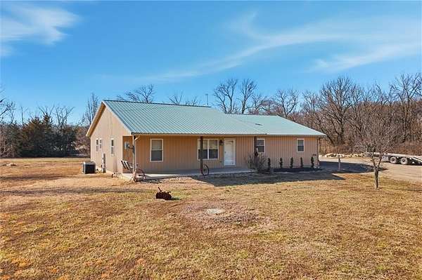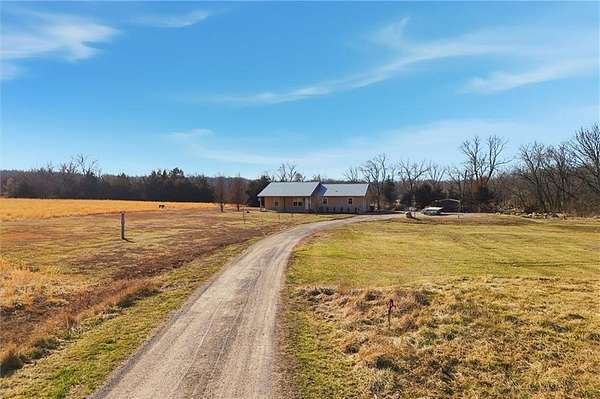 Welcome to tranquil country living on approximately 7+/- acres. Tucked toward the rear of the property, this spacious ranch-style home offers exceptional privacy and peaceful surroundings, accessed by a long private driveway. Boasting 2,400 square feet of well-planned living space, this 3-bedroom, 2-bath residence blends comfort, functionality, and quality craftsmanship throughout. Inside, you'll find custom-built cabinetry and detailed baseboards that add warmth and character. The main level includes two generously sized bedrooms, a full bath, and a conveniently located laundry area designed for everyday ease. The finished basement extends the living space with an additional bedroom, full bath, and a large family room-ideal for entertaining, accommodating guests, or creating a cozy retreat. It also features a spacious storm shelter and a second laundry hookup for added convenience and flexibility. Constructed with durable metal siding and a metal roof, this home is built for longevity and low-maintenance living. The oversized, insulated attached garage offers an impressive 1,200 square feet-perfect for multiple vehicles, a workshop, hobbies, or additional storage. Enjoy relaxing on the covered front porch overlooking the expansive yard, or unwind on the composite back deck with scenic views of a mature tree line. Near the back of the property, a pond has already been excavated and is ready to be filled, providing a unique opportunity to create your own private water feature. Whether you're looking for space to spread out, room to grow, or a peaceful place to call home, this remarkable property offers the perfect balance of privacy, comfort, and potential.