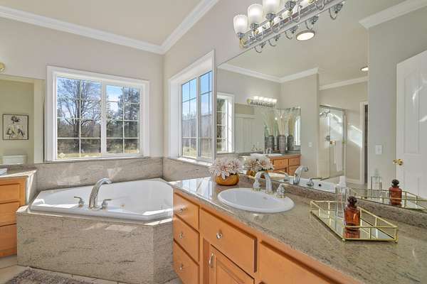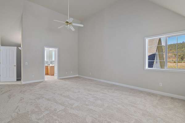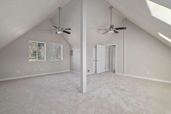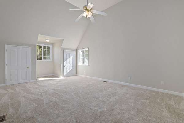 - Ceiling Fan(s), Double Vanity, Fiberglass Stall Shower, Granite Counters, Kitchen Island, Linen Closet, Primary Downstairs, Shower/Tub Combo, Vaulted Ceiling(s), Walk-In Closet(s)