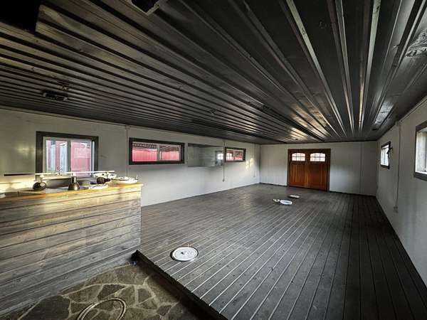 Located at the gateway to Hellgate Canyon, this exceptional ranch offers 74 level acres with frontage on year-round Jumpoff Joe Creek and water rights for 72 acres. A custom wrought-iron entry gate welcomes you to wide-open mountain views and stunning western sunsets. The contemporary farmhouse features a main-floor primary suite, great kitchen, formal dining, office, large mudroom with bath, and a comfortable living room with French doors to an expansive deck. Upstairs is a second living area with soaring ceilings and two oversized guest suites, each with a full bath. Accessed by a separate staircase are two bonus rooms ideal for hobbies or additional bedrooms. The land is fenced and nearly all pasture, with creek frontage and a nearby swimming hole. Improvements include a 2019-built 7,200 SF shop with 800-amp 3-phase power, a machine shed/hay barn, a 25,000 SF former dairy barn, and a converted milking parlor now used as guest quarters with kitchenette and bath.