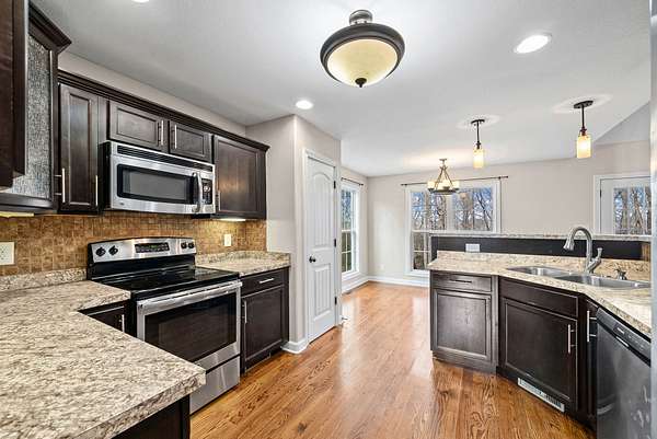 Est $2,020/moNo city taxes! Located on a wooded two acre lot, this beautiful two-story home provides a perfect blend of rural tranquility and modern comforts! Beautiful hardwood floors throughout the main living areas, cozy living room with a stacked stone fireplace and large eat-in kitchen with granite countertops and stainless steel appliances! The spacious primary suite offers a full bath with a double vanity, a soaking tub, and a separate shower!. Upstairs, you'll find a versatile bonus room and two large bedrooms! Awesome outdoor space with a deck and the privacy of no backyard neighbors! The shed conveys with the home, offering extra storage space!