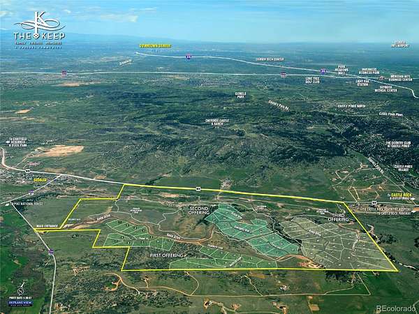 The Keep provides a rare balance of peaceful seclusion and convenient access. It is ideally positioned close to Castle Pines Village, charming Sedalia, the DTC employment center, top ranked schools, upscale shopping, dining, golf courses, and major metro amenities. This remarkable community includes 745 acres of protected open space and miles of private trails. Residents enjoy sweeping unobstructed panoramic views stretching from Longs Peak to Pikes Peak. Don’t miss this once in a lifetime opportunity