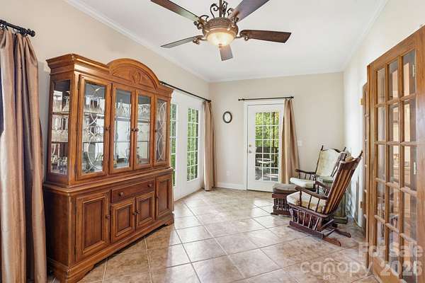 A truly one-of-a-kind offering, this income-producing blueberry farm spans more than 65 acres along the scenic banks of the Tuckertown Reservoir, with nearly 2,200 feet of riverfront creating an unparalleled private retreat. Blending natural beauty with investment potential, the property delivers a rare opportunity to own a working farm while enjoying a refined residential lifestyle surrounded by tranquility and expansive views. The stately brick residence is thoughtfully designed with both comfort and elegance in mind. Inside, rich hardwood floors, coffered ceilings and a warm fireplace set the tone for inviting living spaces. The well-appointed kitchen features stainless steel appliances, generous cabinetry and a casual breakfast area, seamlessly complemented by a formal dining room and dedicated study. The primary suite serves as a private sanctuary, complete with tray ceilings, a sitting area, and a spa-inspired bath with dual vanities, soaking tub, walk-in shower, and dual walk-in closets. Secondary bedrooms are spacious and well-positioned, while a partially finished basement with an additional fireplace offers flexibility for recreation, storage or future customization. Outdoors, the lifestyle truly unfolds. A spacious screened porch invites you to take in peaceful views of the surrounding landscape, while the expansive acreage provides endless opportunities for recreation, farming or future vision. A barn with covered parking and equipment storage supports the property's agricultural use, making it as functional as it is picturesque. With its rare combination of income potential, extensive river frontage and refined living spaces, this exceptional estate offers a distinctive opportunity to experience life on the water at River Run!