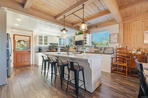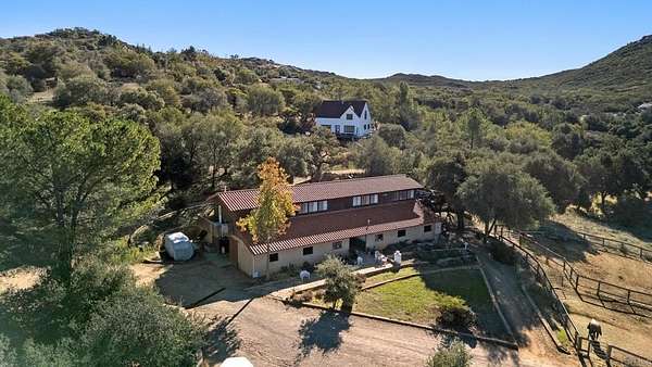 Welcome to your private 9-acre retreat in the heart of Alpine, CA--where modern comforts meet ranch-style living. This beautifully updated property offers endless possibilities for multi-generational living, income production, equestrian use, or simply enjoying wide-open space with stunning surroundings. Fully remodeled in 2022, the main home features 3 spacious bedrooms with an optional 4th, an open-concept layout, quartz countertops, a large pantry, whole-house water filtration, and smart-home upgrades including a kitchen hub for seamless control of lighting, climate, and security. A cozy wood-burning stove anchors the living space, adding warmth and charm. Outside, the amenities are exceptional. A 10-stall barn includes a tack room, mud room with bath, and sits beneath two 1-bedroom apartments--ideal for guests, extended family, ranch hands, or additional rental income. The equestrian facilities continue with a large arena, round pen, four usable pastures, three outdoor corrals, and a smaller pen--all ready for horses or livestock. This property is fully equipped for efficiency and self-sufficiency with two wells, two large water storage tanks, owned propane, a tankless water heater, and 220V hookup in the garage. The oversized two-car garage received a new roof in 2020. Additional highlights include plentiful storage throughout the home and grounds, plus Starlink internet for reliable high-speed connectivity. Enjoy direct access to Windfall Ranch trails right from your property--perfect for riding, hiking, or exploring the outdoors. A rare Alpine offering that blends modern luxury, ranch functionality, and income potential--all on an expansive, usable 9 acres.
