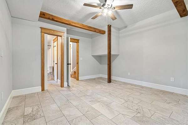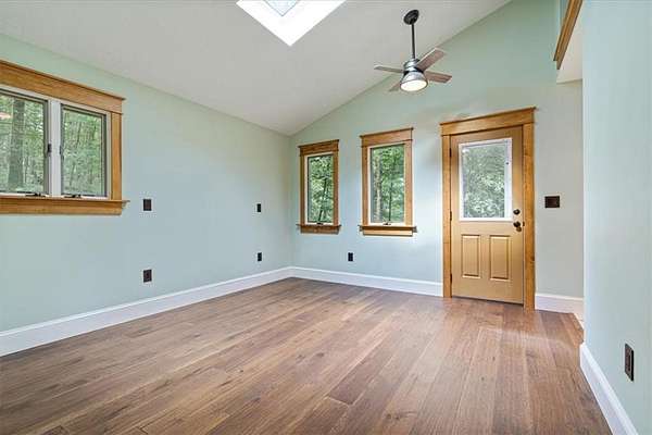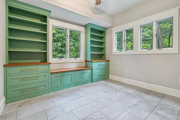 - Built-Ins, Ceiling Fans, Eat-in-Kitchen, Programmable Thermostat, Smoke Detector, Split Floor Plan, Walk-In Closets, Woodstove
