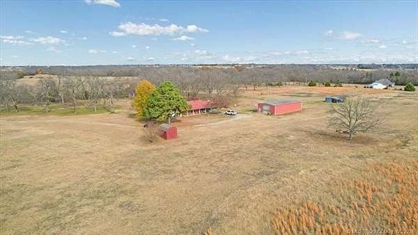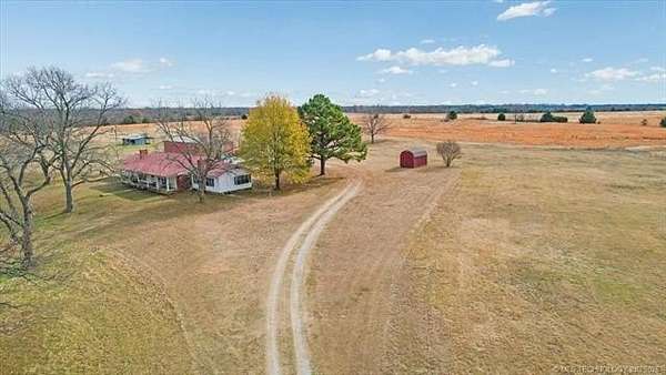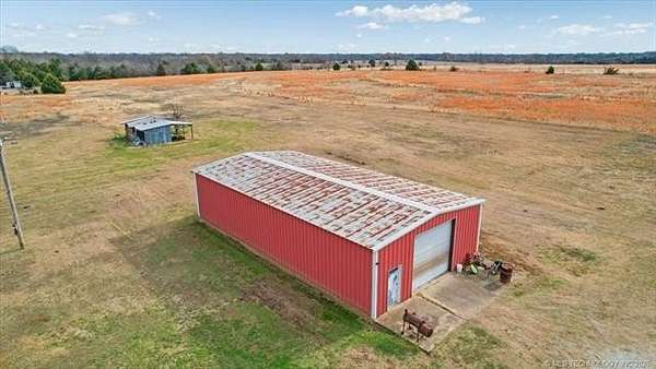 Country Living or great investment on 73.9 Acres with Shop, Pond, Creek & Paved Road Frontage. The home features 3 bedrooms, 2 bathrooms, and two spacious living areas, along with a metal roof approximately 10 years old. Enjoy outdoor living year-round with a 12x50 covered front porch and a 12x50 covered back porch, and in addition, a 24x24 carport. Additionally, this property includes a 30x60 metal shop, a 24x30 shed barn, and a 10x14 storage shed, providing ample space for equipment, livestock needs, or hobbies. A gravel driveway leads to the home, while 975 feet of paved road frontage offers easy access. This property would make an exceptional investment property for development as well. With the location its has tremendous opportunities waiting just ahead. The land itself is highly versatile, featuring scattered pecan trees, a creek, and a fenced back 40 acres with a 1/2-acre pond. The rear acreage has previously been used for hay production and offers strong potential for continued agricultural use, livestock, or recreational enjoyment. Conveniently located approximately 4 miles from Choctaw Casino & Resort and about 8 miles from shopping and amenities. This property also provides reasonable access to regional hubs including Sherman (28 miles), Plano (74 miles), Oklahoma City (155 miles), and Tulsa (150 miles), DFW (85 Miles). Whether you're looking for a full-time residence, small ranch operation, or a versatile acreage with strong infrastructure already in place, this property offers space, privacy, and location all in one.