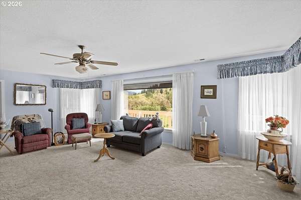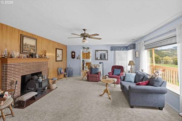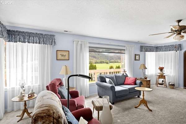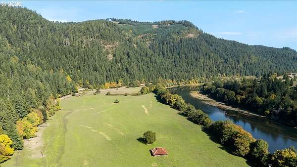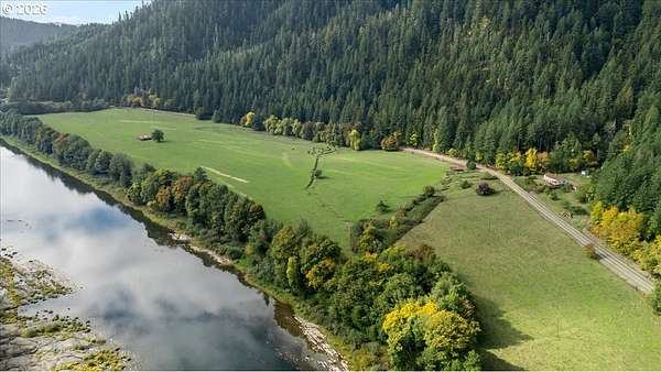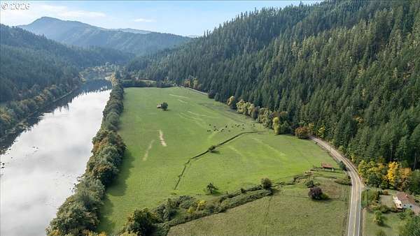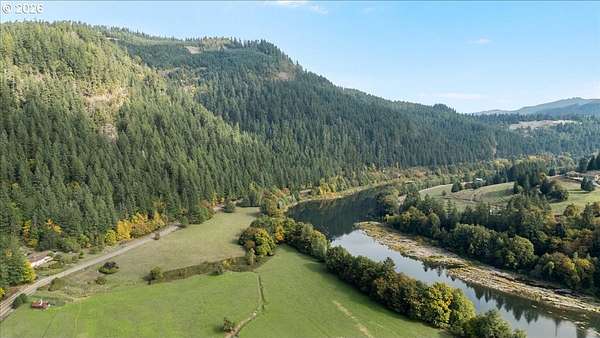 Set along the scenic banks of the renowned Main Umpqua River, this remarkable 90-acre country estate offers an exceptional blend of productive land, water resources, and peaceful rural living. Approximately 60 acres of fertile bottom ground are complemented by 30 acres of gently rising hillside with merchantable timber. The river frontage provides both stunning scenery and a rare sense of privacy in one of Southern Oregon's most picturesque settings. The well-built, comfortable home features three bedrooms plus an office, two bathrooms, a generous laundry room and pantry, and a bright living space with expansive windows that frame the surrounding landscape. A cozy wood stove adds warmth on crisp mornings, while a modern heat pump HVAC system ensures year-round comfort. Additional highlights include a functional kitchen, newer water heater, and a partially covered deck ideal for relaxing and taking in the views. Two classic barns provide ample space for livestock, equipment, and hay storage. The property also includes a large detached two-car garage with workshop, fenced garden area, pump house, established landscaping, and mature fruit trees-including apple and cherry-that produce abundantly. Three water rights, along with a strong domestic well, support a wide range of agricultural uses. With high-quality soils suitable for crops such as blueberries, filberts, grapes, or pasture for grazing, this property is well-suited for both hobby farming and commercial agricultural ventures. Sweeping, unobstructed views down the river valley complete the setting. Whether you're seeking a private rural retreat or a productive working property, this offering delivers on all fronts. Contact us today for additional details or to schedule a private showing.