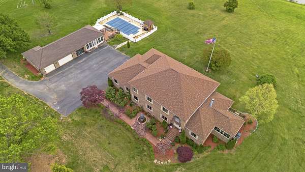 Property is located on 12.4 acres of land and consists of: - 5,700 square foot all brick home - 2 story with full basement - Detached, oversized, 4 car garage and party room - In ground pool - 2000 square foot shop Main Home: Ready to occupy. Brand new 50 year warranty roof. Dual zone HVAC with heat pump and electric aux heat upstairs and a heat pump with gas aux heat for the first floor and basement. Dual water heaters (one gas and one electric) Top floor 4 bedrooms and 3 full baths. Upstairs floors are all carpeted except for bathrooms, which are ceramic tile. All 3 full baths have granite counters. 3 Bedrooms are average size and master bedroom suite is very large with 2 walk in closets. Main floor - all 9 foot ceilings with crown molding throughout Huge kitchen with large walk-in pantry, eat in kitchen area and separate coffee/breakfast nook. Kitchen has all cherry cabinets, granite counters, and hardwood floors. All stainless finish appliances new in 2016 Huge dining room with hardwood floors Carpeted living room with gas fireplace (gas fireplace is located on inner wall and is visible from both the living room and den) Large den with wet bar and adjacent full bath. Den has hardwood floors. Large sunroom with southern exposure and lots of windows (overlooks large pond). Sunroom has ceramic floors and double sliding glass doors that open onto a 16 foot by 14 foot deck 2 story foyer with "widow's walk" that overlooks the front yard. Foyer and main hallway are hardwood floors. Main hallway has exit with 4 steps down into attached oversize 3 car garage 1/2 bath off the main hallway with granite counter and ceramic floor Huge laundry room with deep sink. Laundry room has ceramic floors and has a granite counter Additional Room for a photo studio. Room has a 10 foot ceiling, lots of windows and an access door to the garage. This could be a bedroom, albeit without a closet. Basement foyer accesses large room that could be a bedroom (no closet) but would also be an ideal in-home theater. Room is carpeted. Large full eat-in kitchen with granite counters, ceramic floor and full complement of appliances (including dishwasher) Equipment room that includes 1st Floor HVAC equipment, water heaters, deep sink, and washer/dryer hook-up. Large game room with ceramic floor and attached gym (gym is large enough for my bowflex and Jane's treadmill) Large guest suite with huge walk in closet and carpeted floor. Full bath (shower only - no tub) and ceramic floor Main hallway that has ceramic floor and exits with 5 steps up into the garage Party room: Large party room has HVAC . Party room is all ceramic floor Full kitchen with all appliances (including dishwasher) and water heater Full bath with tub and shower. Sliding glass doors that open onto 24 foot by 30 foot deck. Deck overlooks swimming pool. Swimming pool has separate building that houses the pump and filter. the pump runs 24/7 during the swimming season, there is a timer that allows you to turn it on and off. Concrete floor, insulated metal building Hot water and half bath and full HVAC. Installed 80 gallon air compressor. Loads of electrical outlets and separate electric meter. 12 foot ceiling in main bay with hydraulic lift. Workshop: Miscellaneous: Property has 2 very deep wells. One well provides water to the main house and the other provides water to the shop and party room. Property has 2 septic tanks. One tank is for the main house and party room and the second is for the shop. 5 zone underground sprinkler system waters the front yard, all the plant beds around the house, and the vegetable garden. Dedicated garden location is enclosed in landscape block wall. House has an emergency transfer switch that allows you to connect a generator (minimum 8kw) to a receptacle in the garage for emergency
