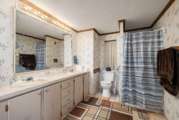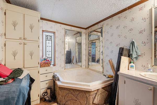 Escape to the peace and privacy of country living with this 2-bedroom, 2-bathroom home situated on 10+ beautiful acres of mostly pasture land. This mobile home on a permanent foundation offers comfortable living with a spacious primary suite featuring a large corner soaking tub, separate shower, and walk-in closets in both bedrooms.The home includes a functional room addition, providing extra living or flex space to suit your needs. Enjoy relaxing mornings or evenings on the covered front porch, and take advantage of the convenience of an attached one-car garage.The property is well-equipped for livestock or hobby farming with full perimeter fencing and a large 37x40 metal barn with electric, making it an excellent opportunity for homesteaders or those looking to embrace rural living.This property is being sold as-is and offers incredible potential for buyers looking to create their own country retreat.