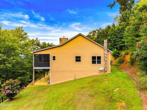 Welcome to your private 40-acre mountain retreat - the perfect blend of seclusion, natural beauty, and convenience. Located just minutes from Douglas Lake for boating and fishing, and a short drive to Gatlinburg, Sevierville, Pigeon Forge, and the Great Smoky Mountains, this property offers both tranquility and easy access to all East Tennessee has to offer. As you enter the property, you're greeted by a fully stocked pond, ideal for peaceful mornings spent fishing. A paved driveway winds through a lush landscape of native trees, flowering shrubs, and fruit trees, leading you to a beautifully designed home that blends seamlessly with its natural surroundings. Cross the tranquil outdoor living areas to reach the front entry, where expansive views of the rolling East Tennessee foothills and Douglas Lake unfold before you. In the winter months, take in views of English Mountain while soaking in the hot tub on the screened-in deck. Inside, the home boasts thoughtful details throughout - rounded drywall corners, natural wood accents, and a striking floor-to-ceiling stone fireplace with a reclaimed chestnut mantle and custom built-ins sourced from the property's original barn. The great room is designed to capture the surrounding views from every angle. The kitchen features granite countertops, a center island, bar seating, and a large walk-in pantry. A dining area with custom plantation shutters offers just the right amount of natural light. The main-level laundry room includes a full bath and utility sink, perfectly positioned for convenience after time spent outdoors or in the garage. The spacious primary suite is also on the main level and includes a luxurious bath with private access to the hot tub deck. Downstairs, the lower level offers a large family room with an efficiency kitchen, a cozy wood-burning stove, two guest bedrooms, a full bath, and a generous storage area. A side yard gives pets room to roam safely. The oversized garage includes space for two vehicles and a third bay with its own remote door - perfect for storing an ATV or outdoor equipment. Wildlife is abundant here: deer, rabbits, wild turkeys, bald eagles, red-tailed hawks, and wood ducks are frequent visitors. This is a rare opportunity to own a true East Tennessee mountain retreat. Most furnishings are negotiable. Be sure to ask your agent for the seller's additional remarks in the MLS. The sellers will be happy to share their process in managing the kudzu landscape as you'll have very little to mow to maintain this property. As always buyer to do their own research. This is truly a one-of-a-kind property! Not a drive-by property call your agent to view.