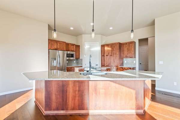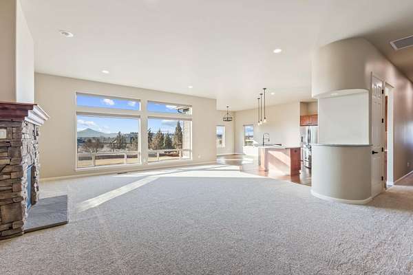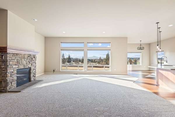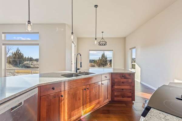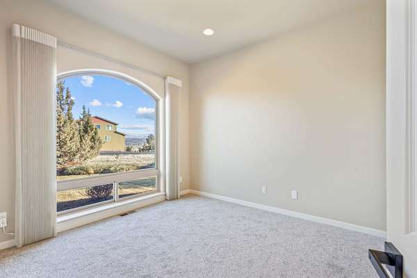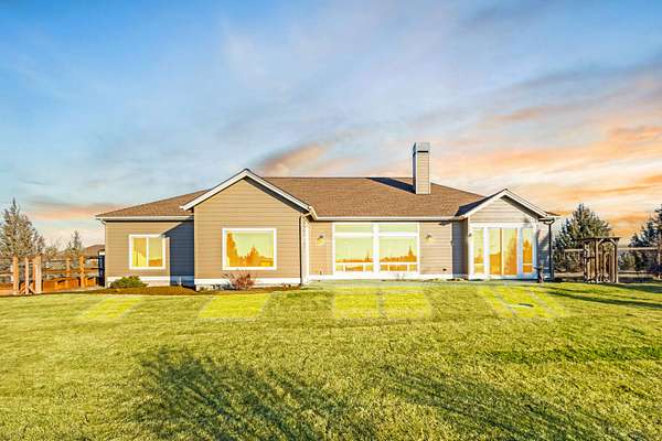 Stunning mountain-view home with over 2ac, offering views of The Three Sisters and Mt. Jefferson. Located in a private, low-crime neighborhood with room for a shop. Interior features include 10' ceilings, 8' doors, expansive custom Milgard windows, Hunter Douglas electric window coverings, and a gas fireplace. High-end finishes throughout: granite countertops, stainless steel appliances, soft-close cabinetry, custom lighting, fresh paint, wood, tile & carpet flooring. Spacious primary suite showcases a luxury 4'x6' stone walk-in shower, soaking tub, double vanities, and walk-in closet with organizers. Large office, breakfast nook, dining room, and walk-in pantry. Triple-car garage, and walk-in laundry with sink & cabinetry. Exterior highlights include custom landscaping, paver patio, paved driveway, fenced area for animals, privacy, and breathtaking mountain views--perfect for toys, entertaining, and everyday living.