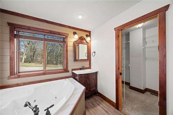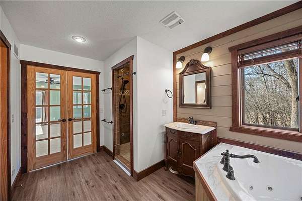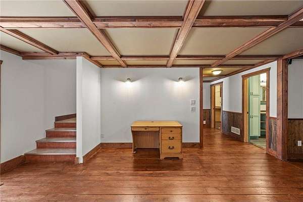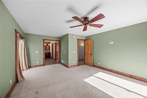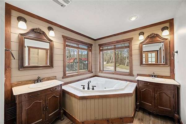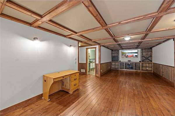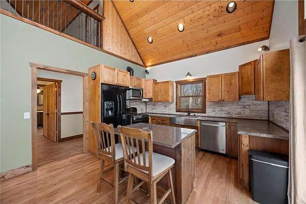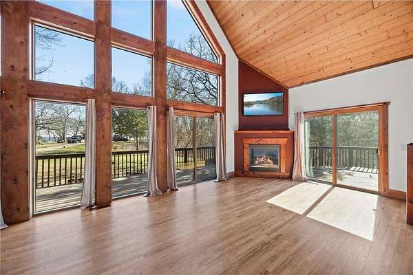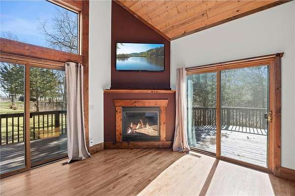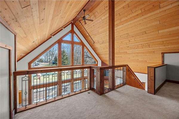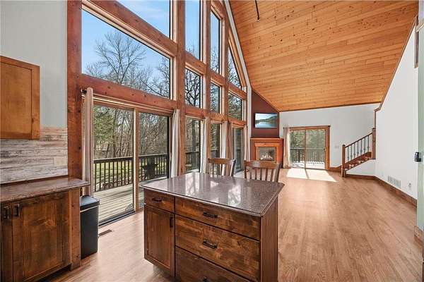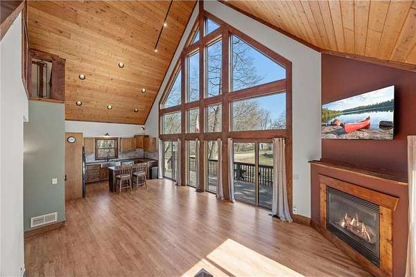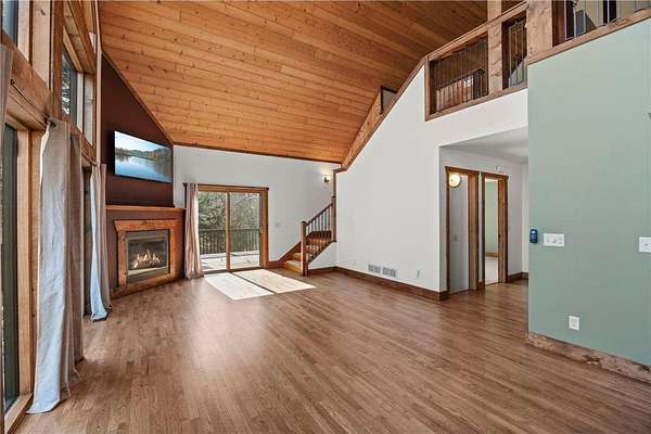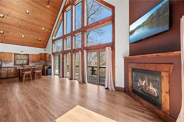 Tucked away on 6.6 wooded acres, this 2-bedroom, 2-bath home with loft offers the kind of peace and privacy that’s genuinely hard to find. At 3,100 finished square feet, there’s room to breathe — from the soaring vaulted ceilings and rich hickory floors on the main level to the warm pine floors of the finished walkout basement.