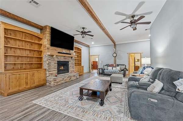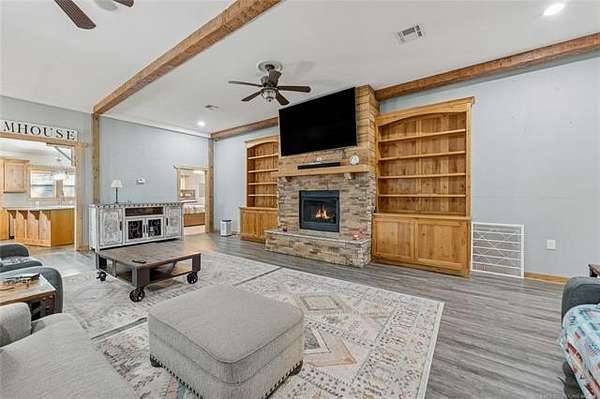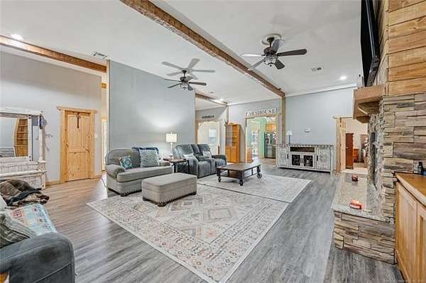 Are you looking for a homestead or just quiet country life convenient to town. This Custom-built home is a must see! It has 10' ceilings, open floor plan, large kitchen w/ lots of storage, granite countertops, & a fireplace. The sliding glass doors lead to a patio, pergola, & outdoor fireplace, perfect for outdoor entertaining. The park-like land is absolutely beautiful! Other amenities include a large pond, 20 X 40 shop, 30 X 40 building used as a venue, storage building and an open shed, as well as a spacious 2-stall carport. The utility connects near the road for RV/shop including a septic system, rural water, & electric pole. 2 brown storage buildings, and mobile home not to convey.