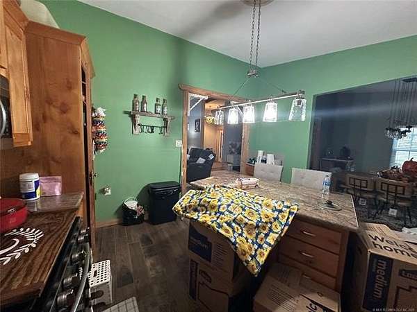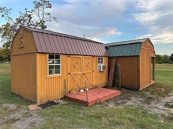 Enjoy a fantastic country retreat on 10 acres with this well-maintained 3-bed, 2-bath home built in 2017! The spacious 2,229 sqft home features a warm living room with laminate flooring, a cozy gas fireplace, and a wood fireplace. The kitchen is equipped with granite countertops, custom cabinets, and working appliances (including a brand-new dishwasher and refrigerator). Flooring includes carpeted bedrooms and tile bathrooms. The exterior features durable vinyl siding and a great covered side porch for relaxation. Utilities are original to 2017. Outbuildings include a 20x30 shop with a full kitchen and bath, a separate 20x20 shop, and a carport. Security is enhanced with a tornado safe room and a 2023 roof.
