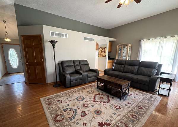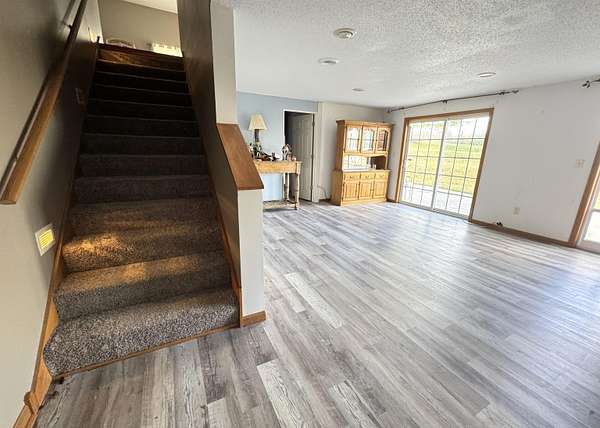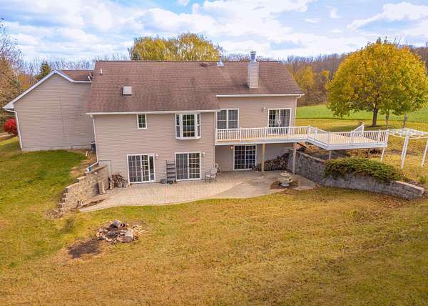 Hidden Gem with Country Charm on 16 Acres! Discover this hidden gem offering timeless country charm, modern comfort, and plenty of space to enjoy the outdoors. Outside is truly a dream come true--this agriculturally zoned property offers 16 total acres, including 11 acres currently leased for crops, providing income potential and excellent farmland. The remaining acreage features beautiful wooded areas teeming with wildlife, perfect for hunting or quiet nature walks. The outbuilding is a standout feature, offering a heated garage and bathroom, plus space easily adaptable for animals, a workshop, or additional storage. Whether you're looking to farm, raise livestock, hunt, or simply enjoy a private rural retreat, this property delivers it all. Step in the house and you will find the large L-shaped kitchen and dining area providing 338 sq. ft. and featuring abundant cabinets with pull-out shelves and a pantry closet, perfect for cooking, hosting, and family gatherings. The living room welcomes you with a cathedral ceiling, wet bar, and stunning stone fireplace that create a warm and inviting atmosphere. The primary suite also features a cathedral ceiling, a private bath with separate water closet, and a large walk-in closet. Two additional bedrooms, a full bath, and a laundry room complete the main level. An attached garage offers added convenience. The walk-out lower level expands your living space with a family room opening to an expansive patio and fire pit, ideal for gatherings. The large bedroom downstairs also walks out to the patio and includes an oversized walk-in closet with abundant storage. Two additional rooms provide flexible space for an office, storage, or hobbies, plus another full bath on this level. Experience the best of country living--peace, privacy, wildlife, and charm at every turn!