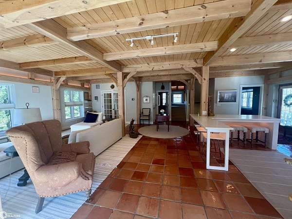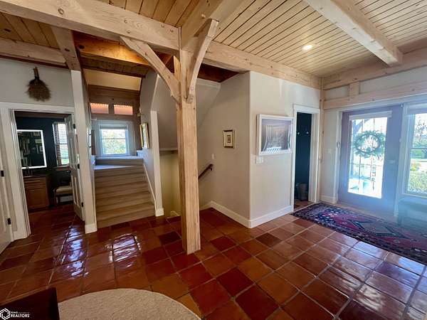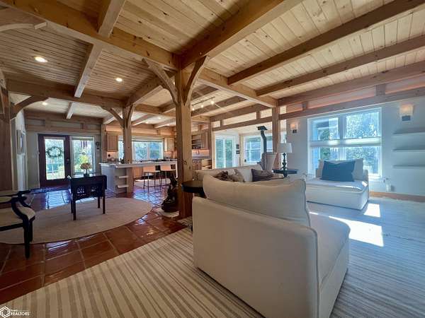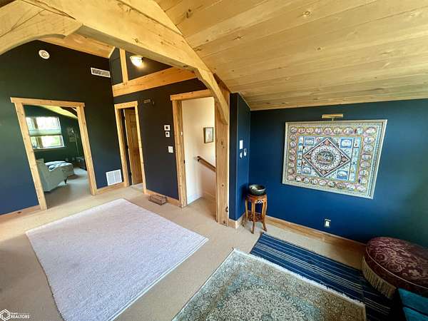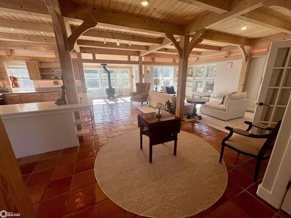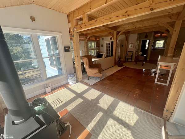 Experience the beauty and craftsmanship of this stunning three-level timber frame Vastu home, set on 6.12 acres of peaceful landscape with forest, creek, prairie, pond, and pool located in the cherished Seven Hills subdivision. With 3,000 sq ft of finished living space, this home combines timeless design, abundant natural light, and modern comfort. The main floor features a stylish remodeled kitchen, half bath, wood stove and a versatile room with French doors. Upstairs offers two bedrooms, dreamy remodeled bath, and an office nook overlooking the property. The bright, spacious, walk out lower level was recently remodeled with high-end tile floor and includes two bedrooms, an open living area, a large 3/4 bath and laundry room. Brand new high-quality boiler supplies three radiant in floor heat zones. Two-zone A/C new in 2019. Roof replacement in 2023. fenced saltwater pool featuring a new liner, new salt generator, working pump and brick patio with steel pergola. Thoughtful landscaping includes paver-sculpted driveway and many consciously planted trees and shrubs for added privacy and beauty. Property includes a separate buildable 2.42-acre lot with walking trail, wildflower prairie, and private access to a pond shared with 4 other properties. CC&R's apply.
