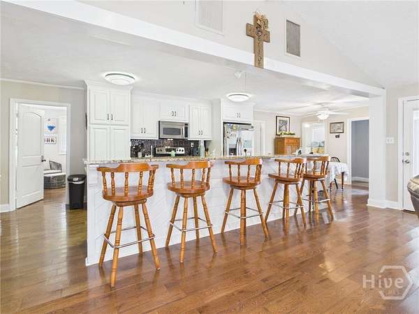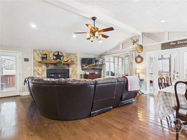 Lake life begins here! This rare Lake Oconee offering includes private lake access, a wharf dock, and over 2.5 acres across two lots-providing exceptional privacy, space, and versatility. The beautifully updated 4-bedroom, 2.5-bath home showcases hardwood floors throughout, granite countertops, and stainless steel appliances. Designed for refined outdoor living, the property features a saltwater inground pool, screened-in porch, and a 24x24 outbuilding. Whether boating, entertaining, or unwinding poolside, this exceptional retreat offers the best of lake living-just minutes from Sugar Creek Marina
