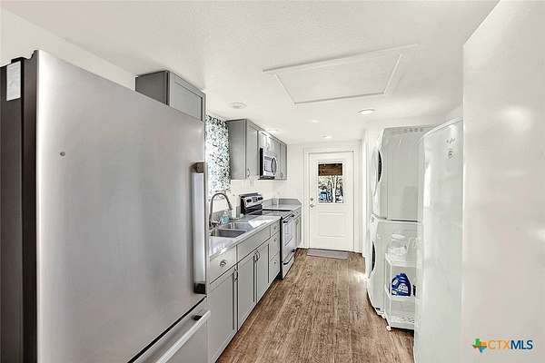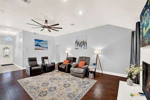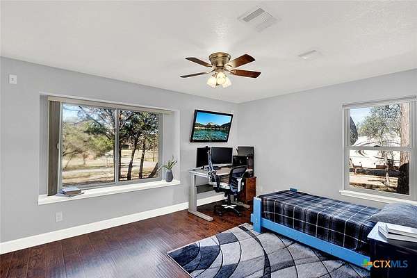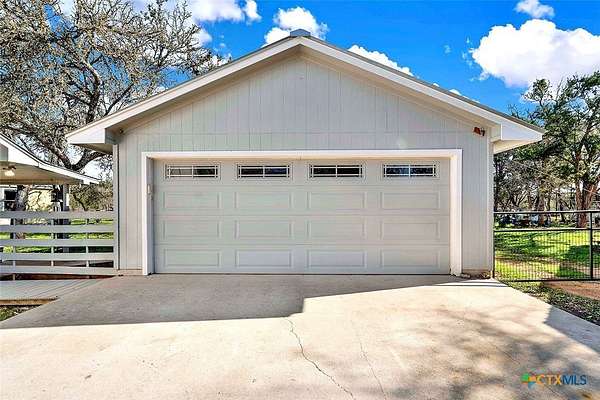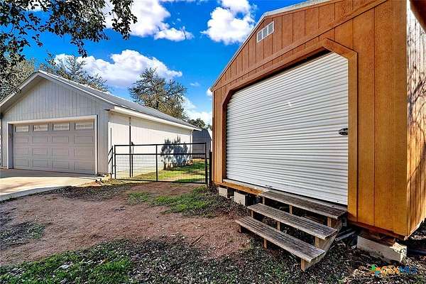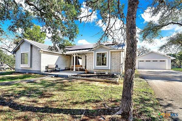 No HOA! Fully separate 1BR ADU perfect for revenue or extended family. This well-treed, 6.19 ac of Hill Country is located just outside the city limits of San Marcos, and yet still close to everything SM has to offer. The main home is a 2,085 sq. ft. single-story, featuring 4-beds, 2-baths. The main living area boasts high ceilings & a wood burning fireplace. Sizeable dining room can easily accommodate a 8+ person table & more. Kitchen features plenty 'o storage w/contemporary cabinets everywhere, quartz countertops & a coffee bar. Laundry room is conveniently located off the kitchen. The spacious primary bedroom includes an ensuite bathroom, featuring a tiled shower, dual vanities and his & hers walk-in closets. Updated LVP flooring and tile throughout. Remaining bedrooms generously sized! New windows in 2017. The large, 572 sq ft detached 2-car garage has room for a workshop or storage. It has power, is fully insulated, & includes an in-window ac. The separate ADU, built in 2021, is ADA compliant, w/an entry ramp from attached, custom built, LARGE high-end 2 truck(?) attached carport. The ADU's 800 sq ft interior has a full kitchen & washer/dryer hook ups. Living room & single bedroom are huge. ADA accessible shower. Three storage sheds are available, w/the largest at 427 sq ft & insulated. Standing seam metal roof on main home, detached garage, and ADU. Both primary & ADU come equipped w/fully-owned solar panels & large back-up batteries! Two RV power hookups, and one RV sewer connection. Multiple fenced-in areas behind the home for your animal needs. Chickens, goats, a cow or two? Walk the land & try not to get lost! Refrigerator and W&D in each home convey. Texas State, 5 miles away; HEB 6 mi; Hospital & Lowe's 9 mi; Target 10 mi; Outlet Malls 12 mi. Taxes, schools, proximities, sq ft & lot size to be confirmed by buyer. It's the perfect home base for those who value space, nature, & a quiet neighborhood vibe without sacrificing proximity to city amenities.