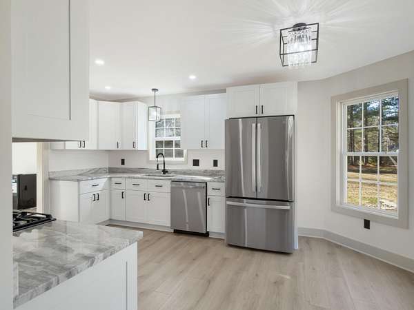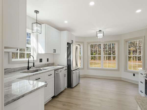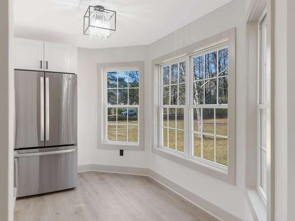 COMPLETELY renovated and truly turn-key, this stunning home sits on 1.65 private acres, offering a rare sense of peace, privacy, and serenity just minutes from Summerville conveniences. From the moment you turn into the driveway, the setting invites you to slow down and enjoy quiet Lowcountry living.Every detail has been thoughtfully updated, including craftsman moldings, LVP flooring throughout, all new lighting, black matte hardware, and modern electrical upgrades. Smart storage solutions and flexible living spaces make everyday life effortless.The main level features a spacious living area, half bath, laundry space, and a brand-new kitchen with shaker-style cabinetry, soft-close doors, pull-out storage, granite countertops, propane range, and stainless steel appliances. A flexA flex room off the kitchen offers endless possibilities, adapting effortlessly to your lifestyle. Upstairs, the home transitions into a private retreat with three bedrooms and two fully renovated bathrooms. The primary suite is a peaceful escape with a walk-in shower, dual sinks, Kohler fixtures, and a customizable walk-in closet, allowing the next homeowner to design their ideal space. Outdoor living truly shines with a large fenced backyard, expansive deck, and a fully wired detached garageperfect for a workshop, gym, or studio. A spacious front porch and wooded setting provide room to relax, play, garden, or simply enjoy the quiet. This is a home designed for those seeking modern comfort, flexibility, and space to breathewithout sacrificing convenience. With no HOA, the homeowner has the freedom to truly make this property their own. A rare opportunity to own a fully updated retreat on acreage. Schedule your showing and experience the lifestyle Don's Lane offers.